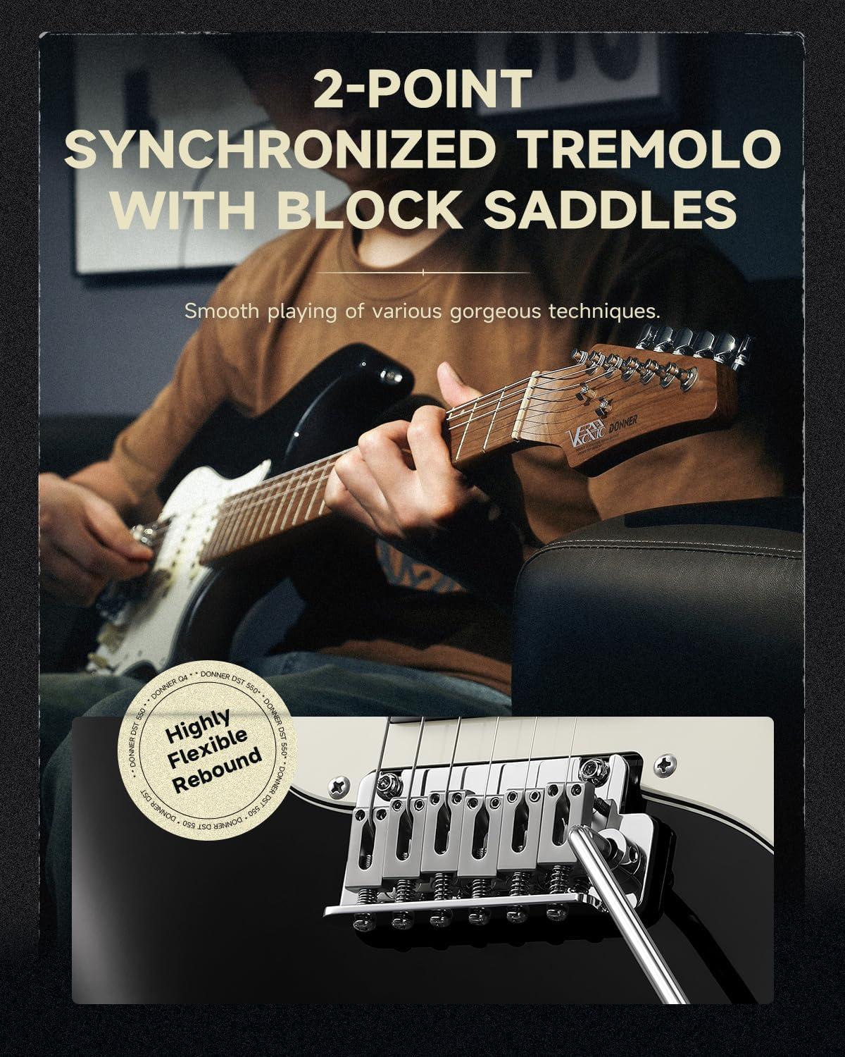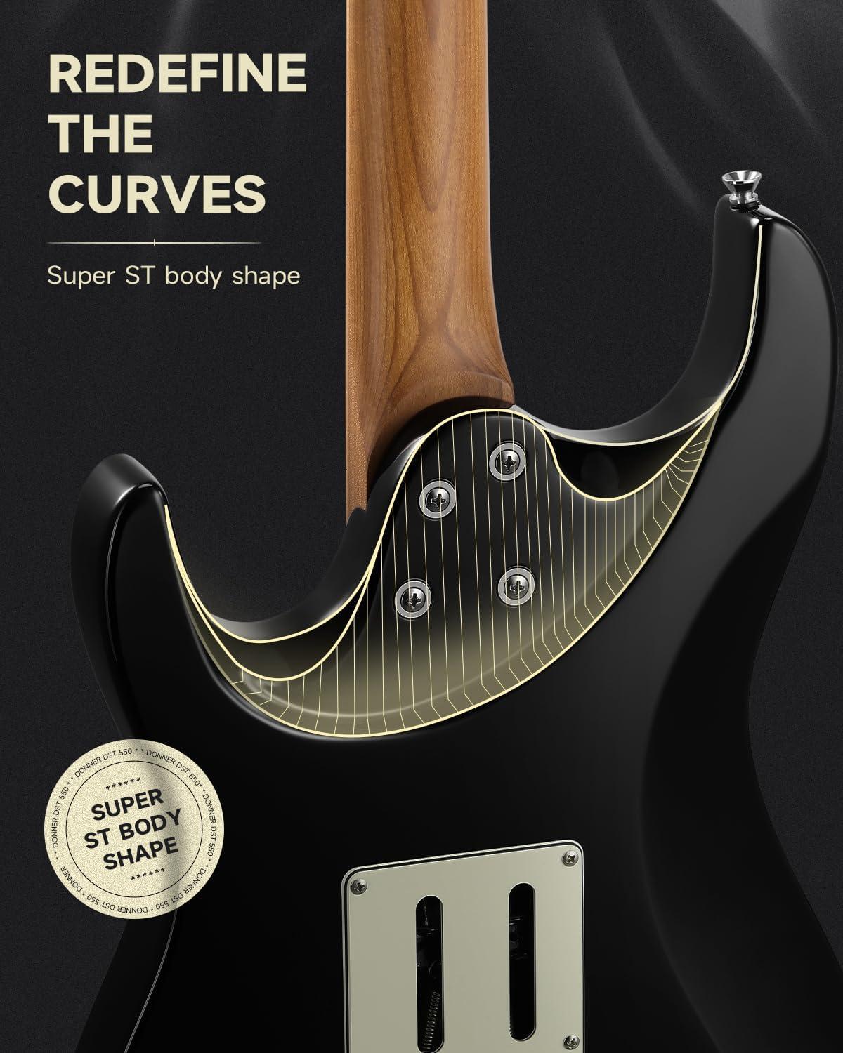 【Suitable for All Players】Classical silky C-shaped neck profile with built-in neck stiffener, AAA Canada maple neck made in satin finish is smooth and durable, provides a comfortable playing feel for all players, with quality tone. DST-200 electric guitar is suitable for players of all levels, making it an ideal choice for learning and performing