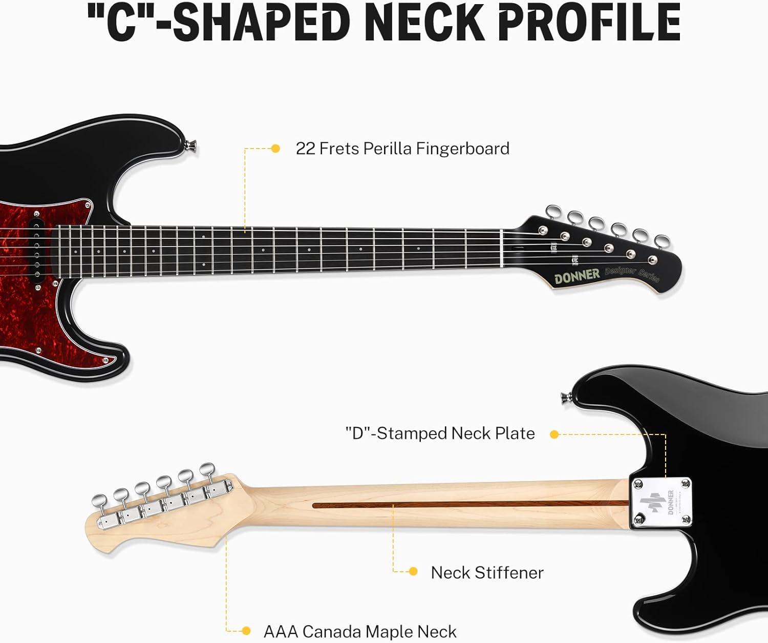 【Suitable for All Players】Classical silky C-shaped neck profile with built-in neck stiffener, AAA Canada maple neck made in satin finish is smooth and durable, provides a comfortable playing feel for all players, with quality tone. DST-200 electric guitar is suitable for players of all levels, making it an ideal choice for learning and performing