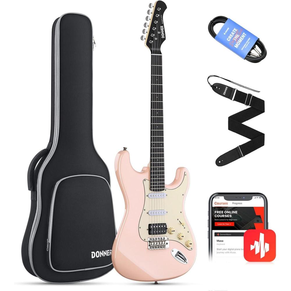 Donner 39 Inch Electric Guitar, Designer Series DST-200 Stylish Solid Body Electric Guitar for Beginner Intermediate & Pro Players, Single Coil Split System, Includes Bag, Cable, Strap(Blossom Pink)