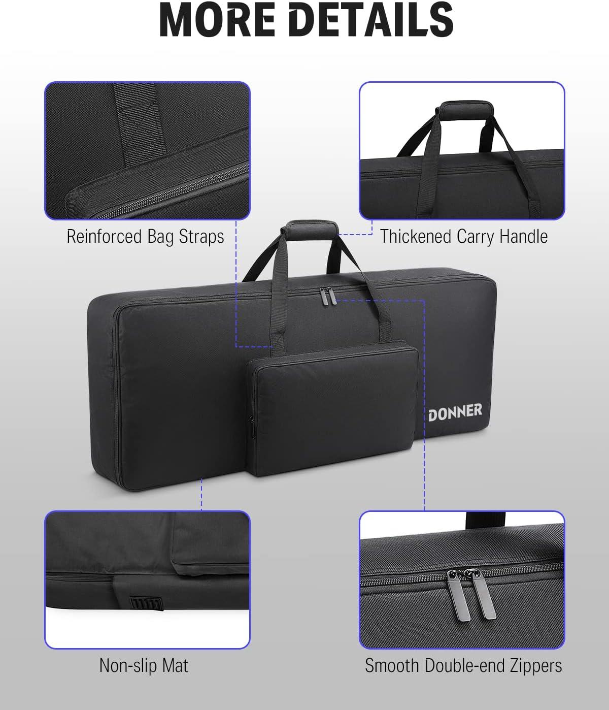 𝗣𝗿𝗼𝘁𝗲𝗰𝘁 𝗬𝗼𝘂𝗿 𝗞𝗲𝘆𝗯𝗼𝗮𝗿𝗱 – Donner's 61 key keyboard case is made of heavy-duty 600D nylon oxford and soft lining fabric 210D with inside 10 mm thick foam padding and anti-friction bottom pads to protect your keyboard from unexpected collision, scratches, and other damages.
