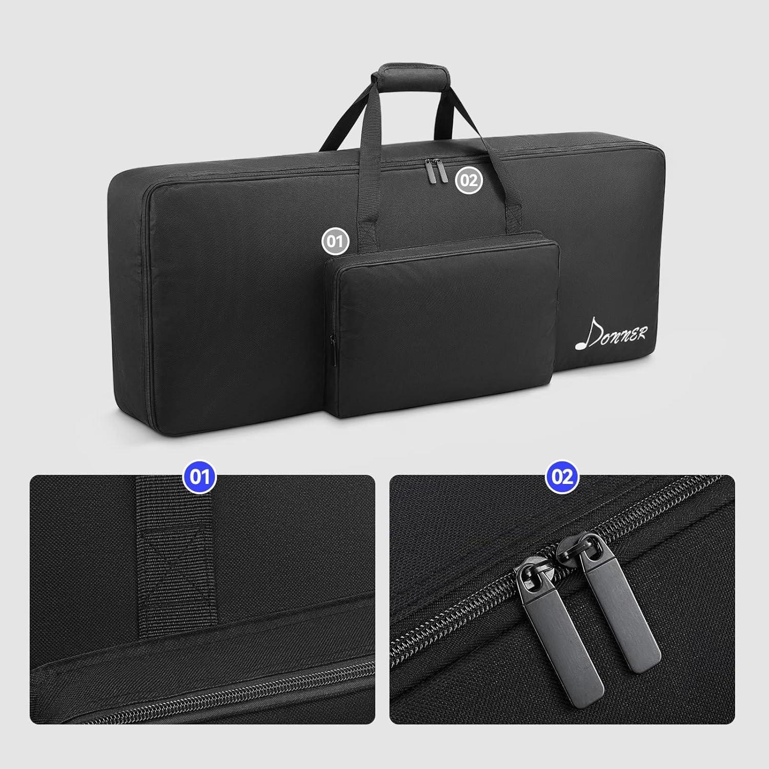 [61 Key Keyboard Bag] Donner’s keyboard bag is well enough to contain your favourite keyboard. The big front pocket perfectly fits for Audio cables, pedal , books, and more.