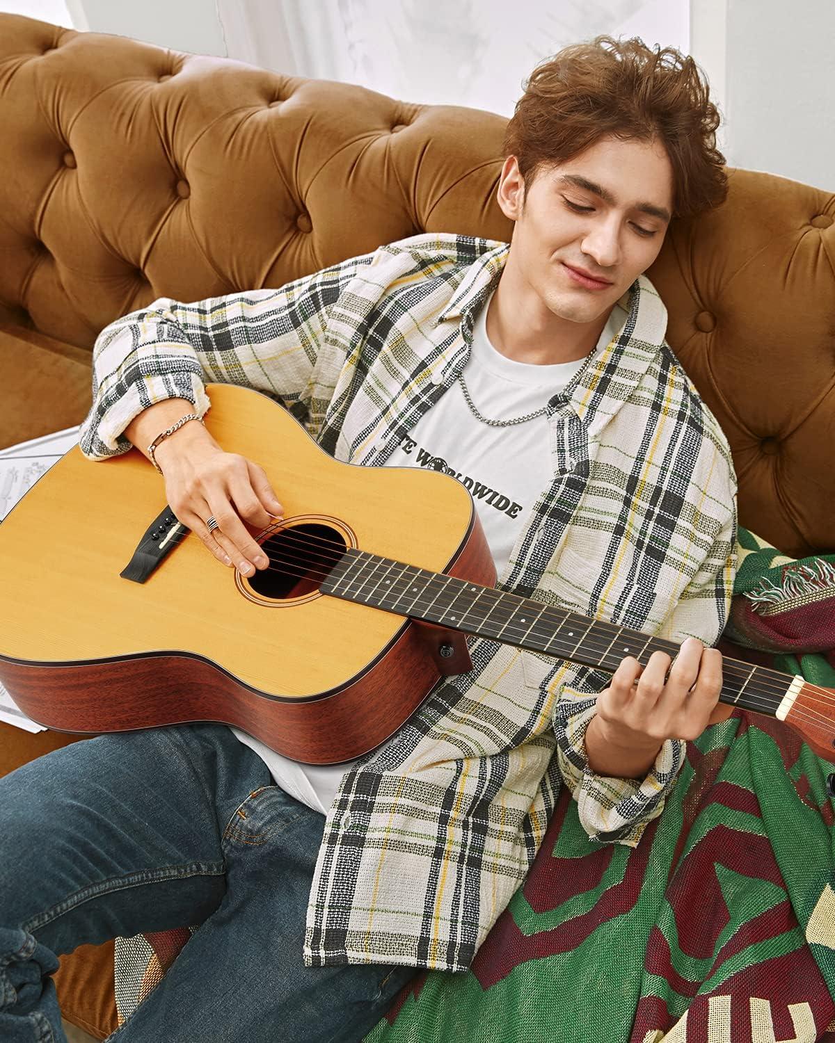 【Playability】: Full-size 41-inch dreadnought body for a full and vibrant tone suitable for all music styles; Donner acoustic guitar offers excellent playability and tone for starters