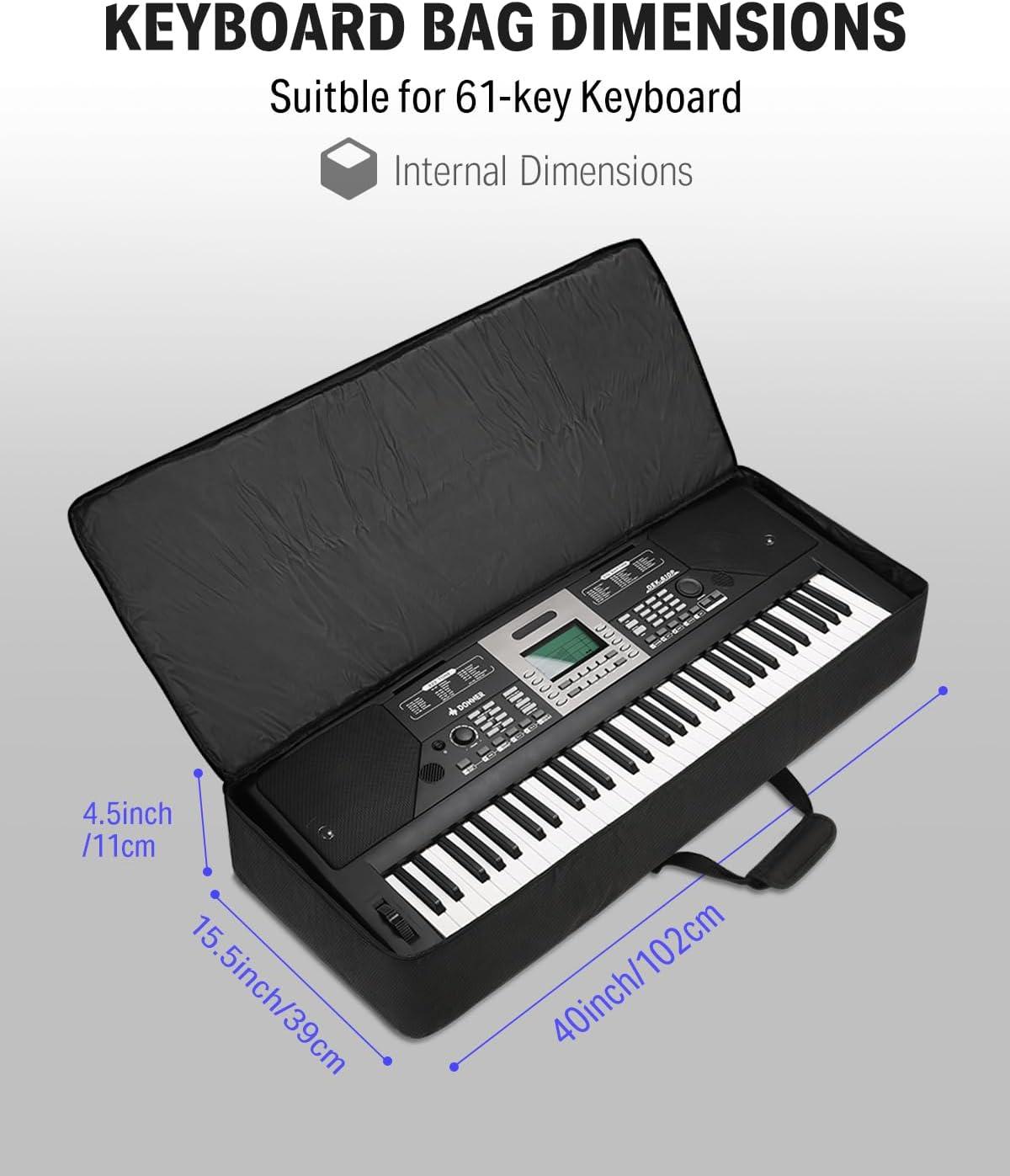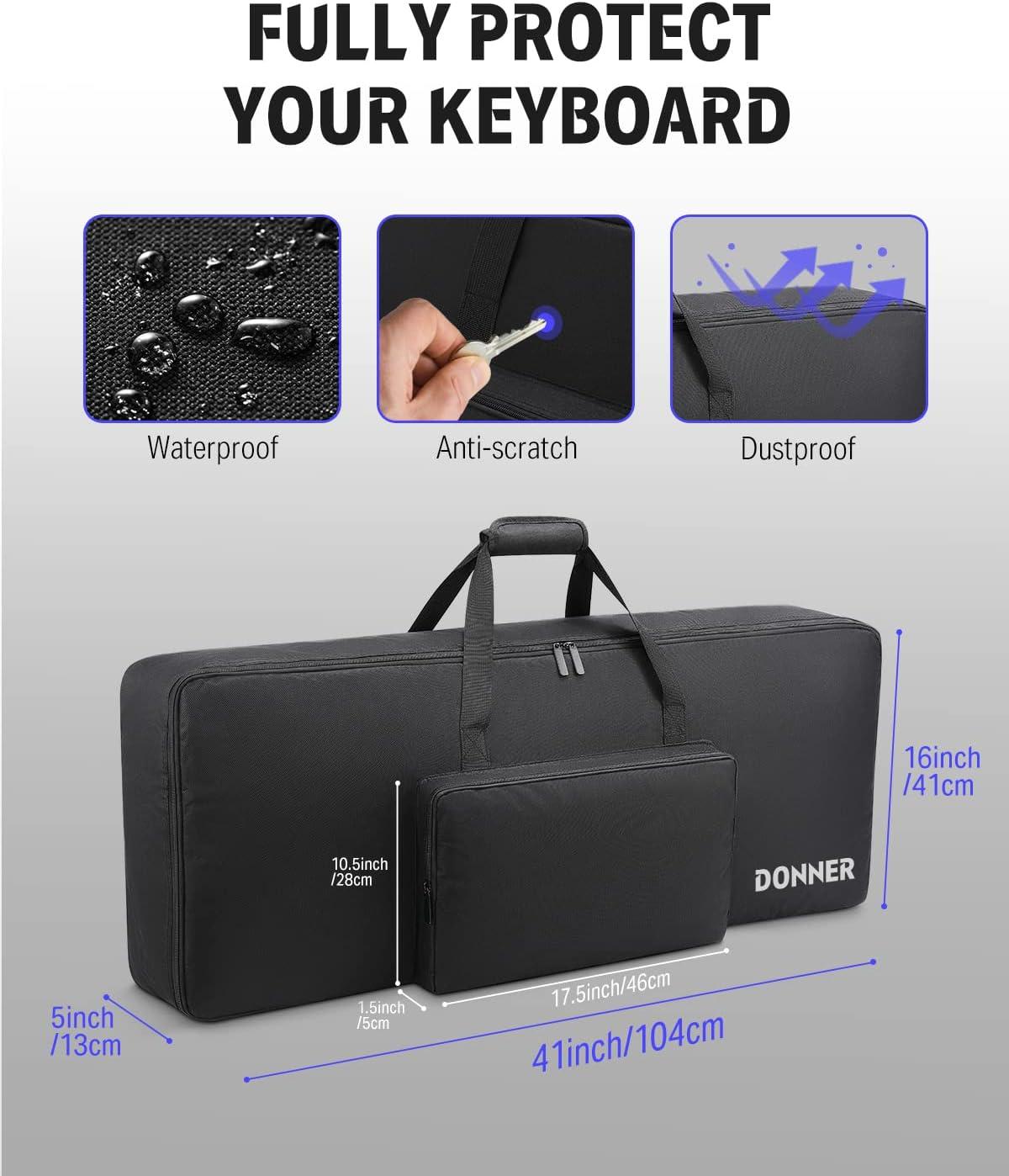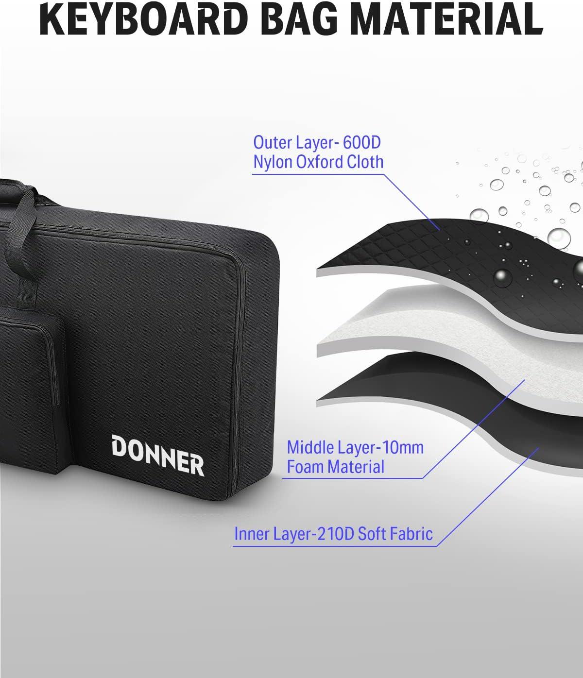 𝗣𝗿𝗼𝘁𝗲𝗰𝘁 𝗬𝗼𝘂𝗿 𝗞𝗲𝘆𝗯𝗼𝗮𝗿𝗱 – Donner's 61 key keyboard case is made of heavy-duty 600D nylon oxford and soft lining fabric 210D with inside 10 mm thick foam padding and anti-friction bottom pads to protect your keyboard from unexpected collision, scratches, and other damages.