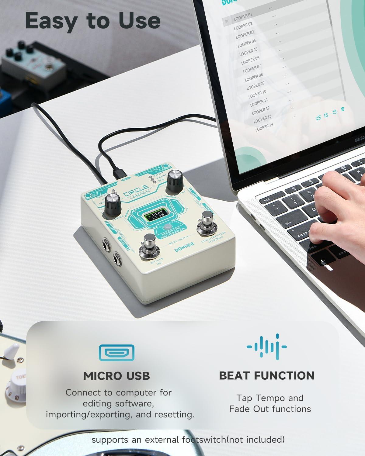 🔁[Versatile Loop Station]: Donner Circle looper supports an external footswitch(not included), and it's also equipped with Tap Tempo and Fade Out functions. There's more fun for you to discover