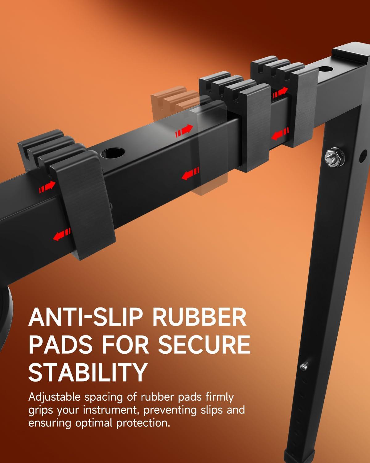 【Three-Way Adjustable – Height, Width, and Depth】Height (24.4–32.7”), width and depth adjust to accommodate different playing styles and device sizes. Four foldable corner legs rotate freely from 90° to 180°, enabling multiple configurations for practice, storage, and performance display.