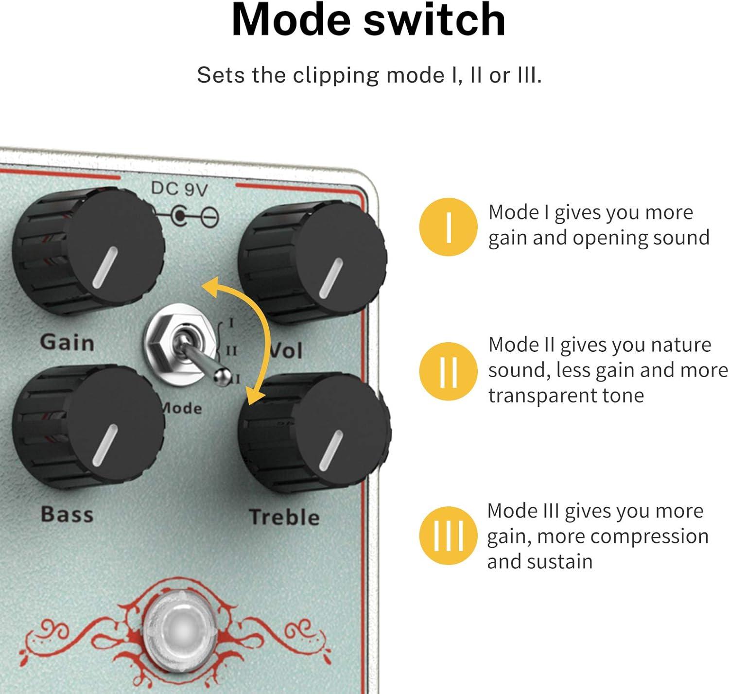 【Two Practical Modes】Equipped with a mode selector switch, the Lax guitar compression pedal allows more dynamics ranging from smooth tone to robust and vivid sound.