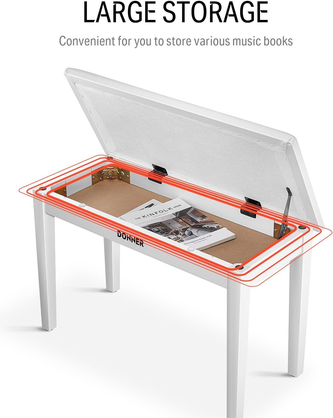 𝐁𝐮𝐢𝐥𝐭-𝐢𝐧 𝐒𝐭𝐨𝐫𝐚𝐠𝐞 𝐂𝐨𝐦𝐩𝐚𝐫𝐭𝐦𝐞𝐧𝐭: A large built-in storage compartment is under the seat for storing several sheet music, books, or other items, which will give your music space a clean, polished look; The top lid and hidden storage are connected by a premium bracket lock which can hold the seat lid in a fully open position