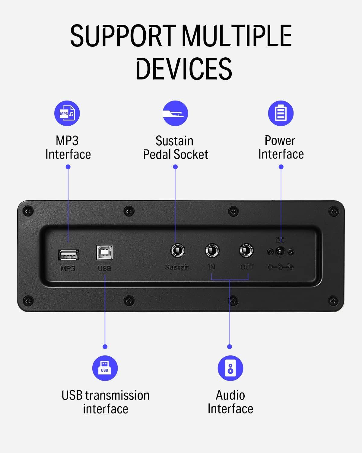 128 polyphony, Donner DDP-100 digital piano have one pure tones sampled from real acoustic grand pianos. Guarantee the quality of your practice and performance.