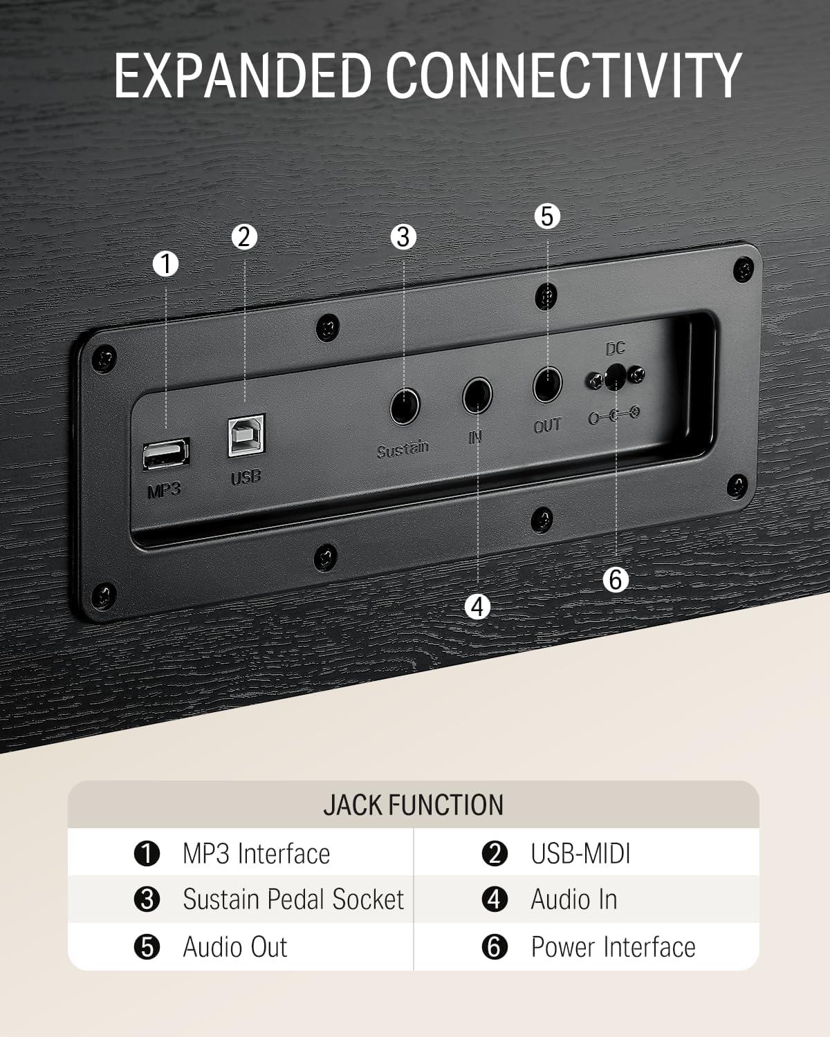 【More Functions Create More Possibilities】DDP-100S 88-key digital piano expands your musical palette with 200 sounds, 200 rhythms, & 100 demo songs. Includes auto-tuning, metronome, transposition, MIDI In/Out for comprehensive practice