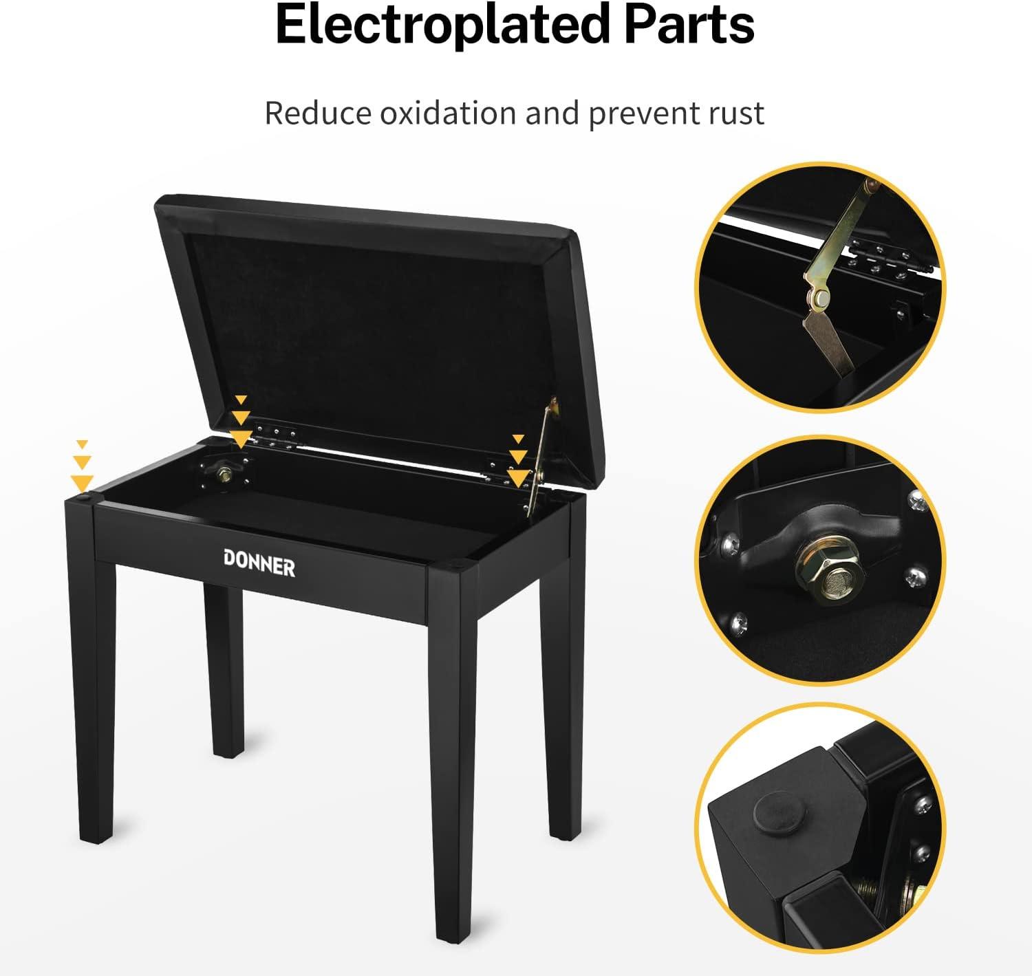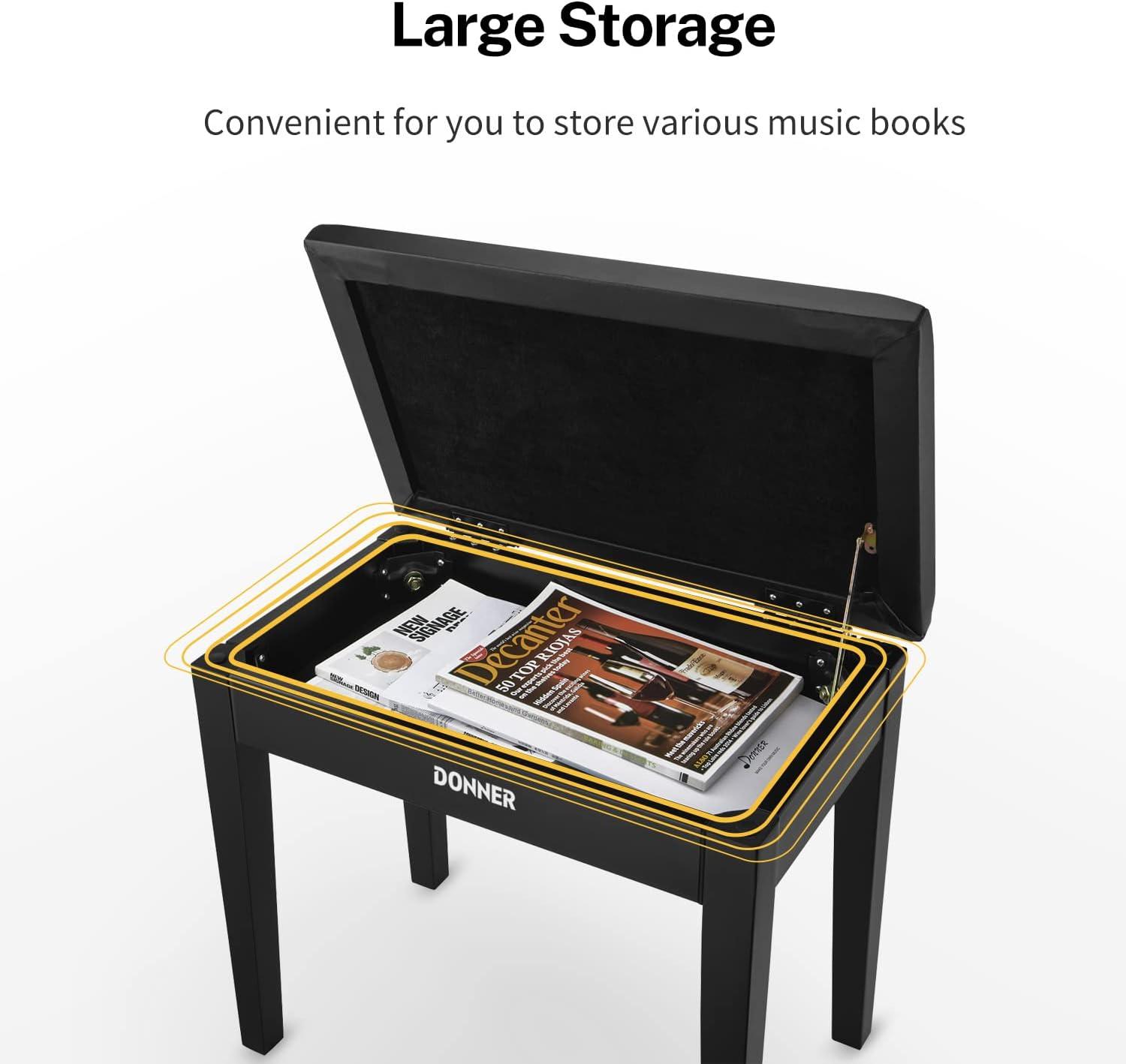 [Ideal Piano Stool] Different from the traditional piano stool, Donner bookcase piano bench which can store sheet music or other books, provides convenient hidden storage space for you. The flip-top is easy to open and with stable support.