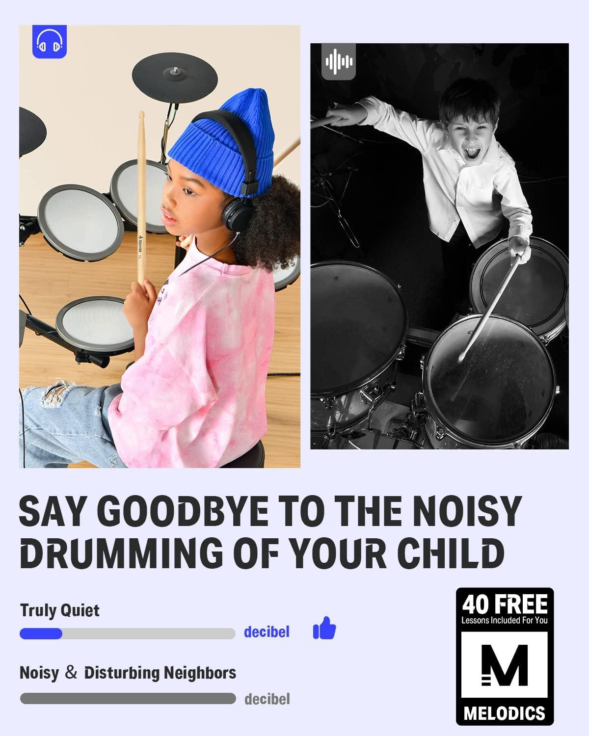 【Interactive Drum Kit Lessons】40 virtual lessons from Melodics for fun. You can hone your skills in any style. Remember to contact customer service to receive the courses! TIPS: We do not offer subscription services