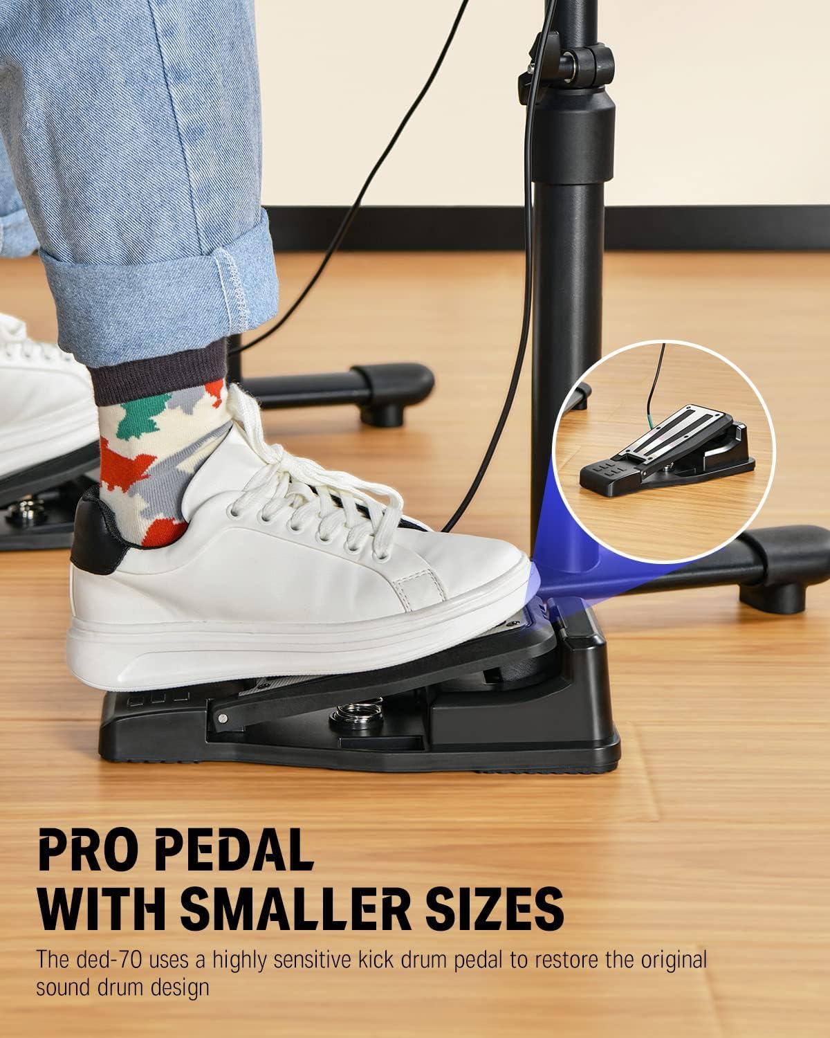【Flexible Stand Design】The Donner DED-70 electric drum kit features a flexible and adjustable stand design that can adjust the height and angle for all young players aged 4-14 years. Its Expanded Size: 41.34*15.79*38.2inch