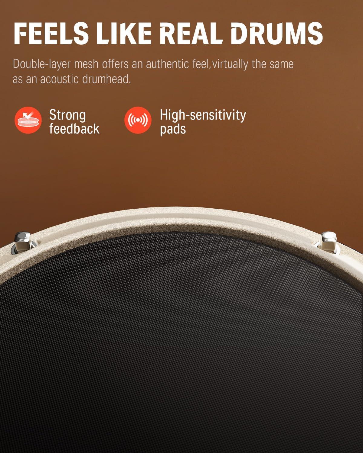 【Industry Standard Mesh Heads】The DED-80 electric drum set comes with double-layered, high-density mesh drumheads that provide a long-lasting and realistic playing experience