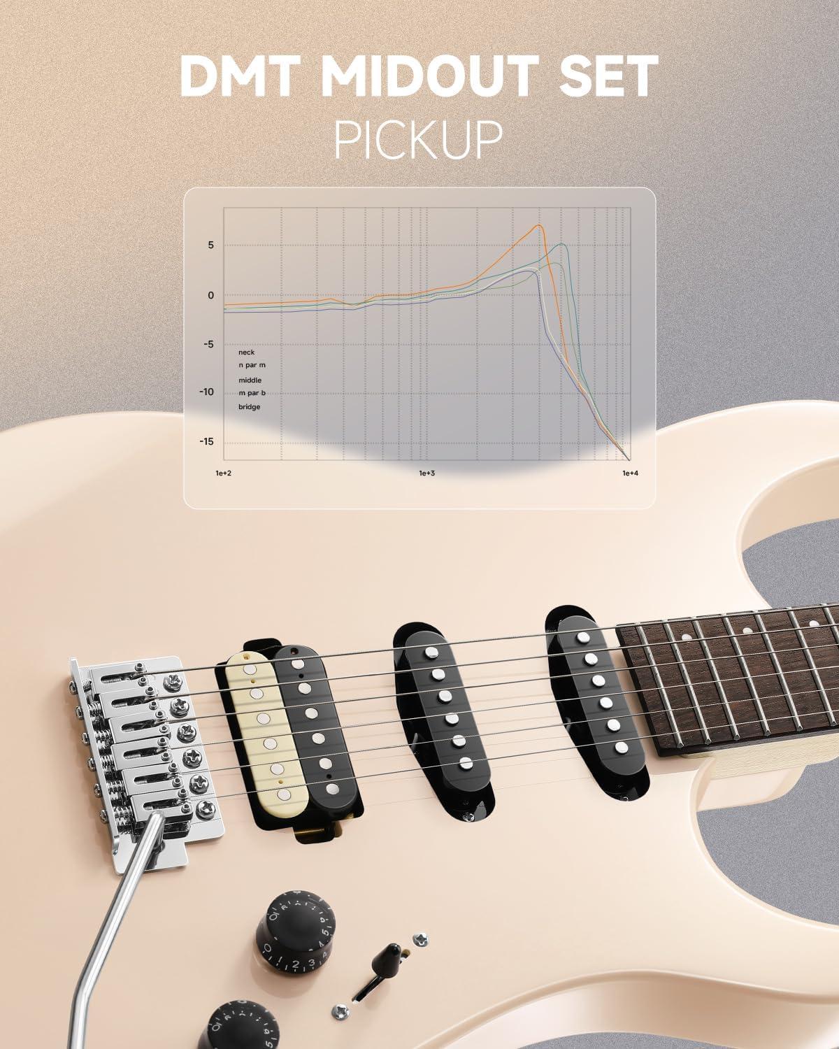 DMT Midout Set Pickup – New Reflectone pickups created in collaboration with Donner Lab Designs deliver clear and articulate tones with solid lows and sparkling highs, while the HSS pickup configuration offers outstanding versatility
