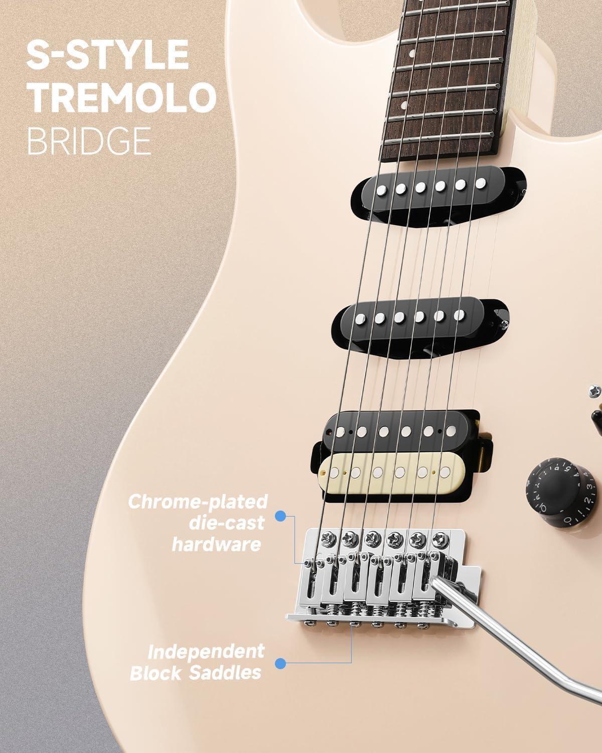 Synchronized Tremolo Bridge- The DMT-66 electric guitar features six individual saddles, making it easy to adjust the precise height and pitch of each string, delivering expressive tones and extended sustain