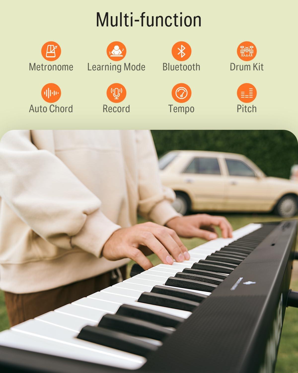 Donner Digital Keyboard 88 Keys, Beginner Electric Piano With Velocity-Sensitive Keys, Stand, Sustain Pedal, Carrying Case and Keyboard Stickers, DEP-1