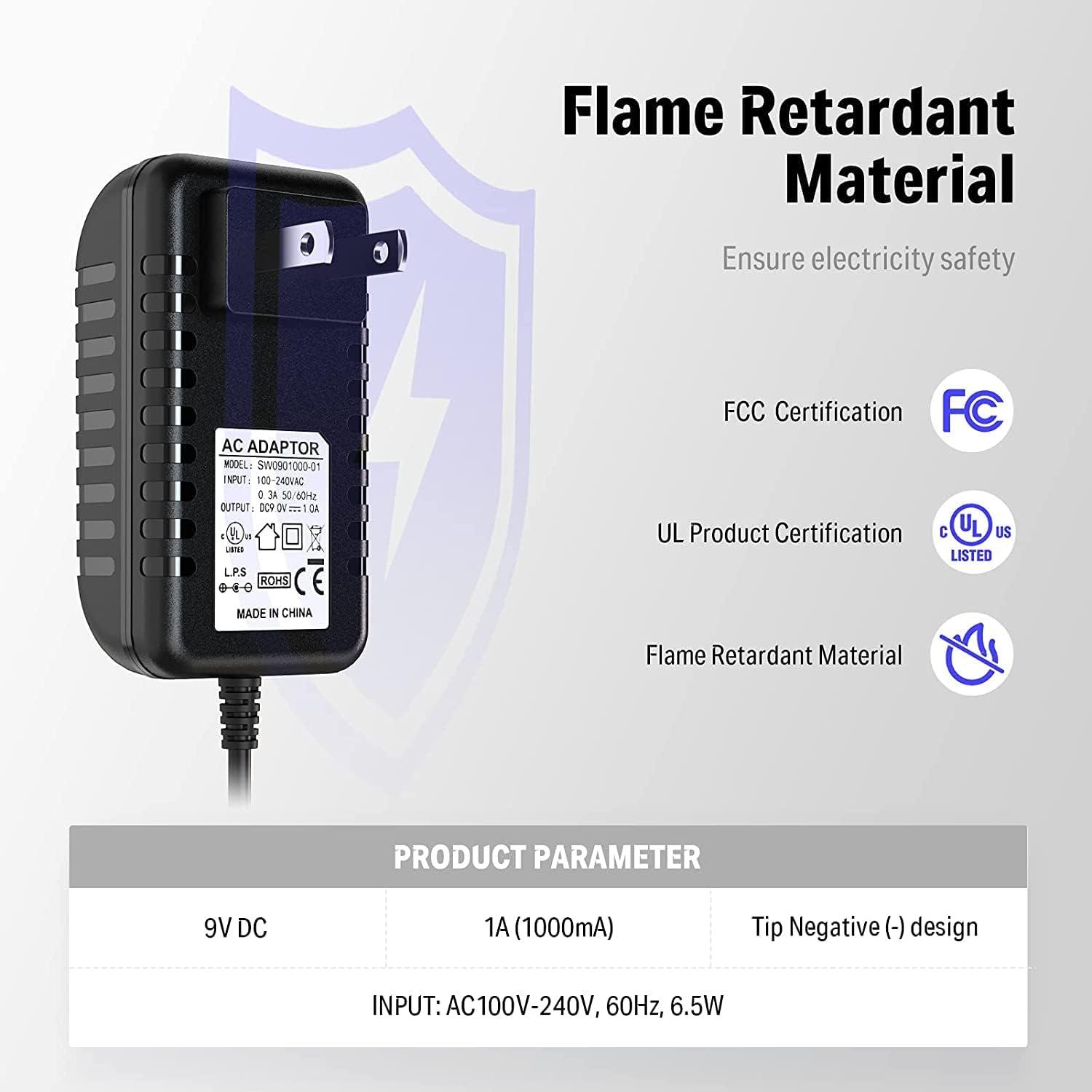 DETAILS:OUTPUT: 9V DC, 1A (1000mA), Tip Negative (-) design;INPUT: AC100V-240V, 60Hz, 6.5W