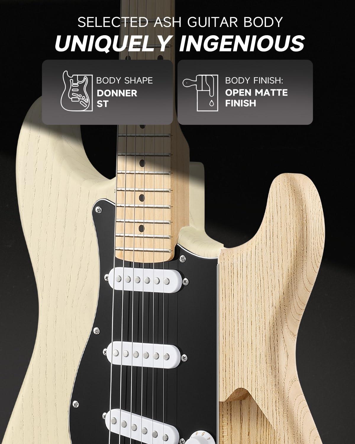 PERFECT FOR ALL, UNIQUE FOR YOU:Whether for kids or adult, beginner or seasoned, this all-inclusive set is the ideal way to kickstart your rock journey. Crafted from premium Manchurian Ash with an open matte finish, each guitar is uniquely beautiful and makes an unforgettable present for any occasion, from Christmas to birthdays