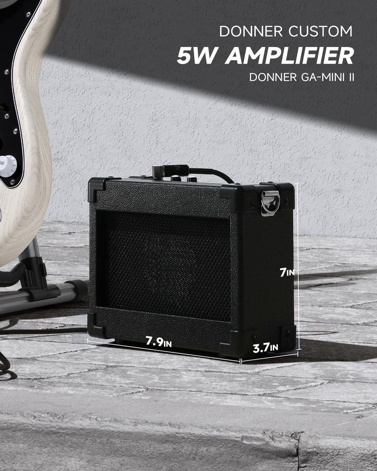 COMPLETE BEGINNER’S PACKAGE:Open the box, and you’re ready to play. This beginner kits includes the DST-80 electric guitar, custom 5W amplifier, durable gig bag, capo, strap, extra strings, digital tuner, amp cable, picks, and access to free online lessons from Donner to help you grow and shine