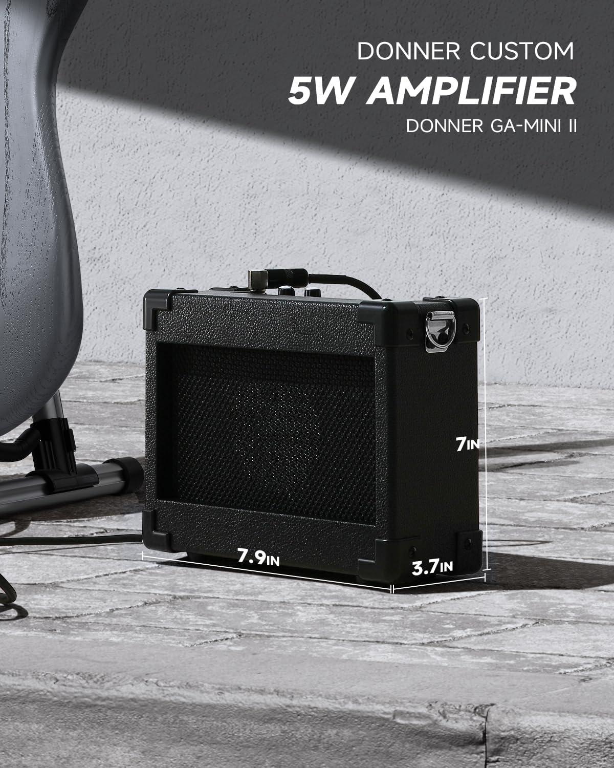 COMPLETE BEGINNER’S PACKAGE:Open the box, and you’re ready to play. This beginner kits includes the DST-80 electric guitar, custom 5W amplifier, durable gig bag, capo, strap, extra strings, digital tuner, amp cable, picks, and access to free online lessons from Donner to help you grow and shine