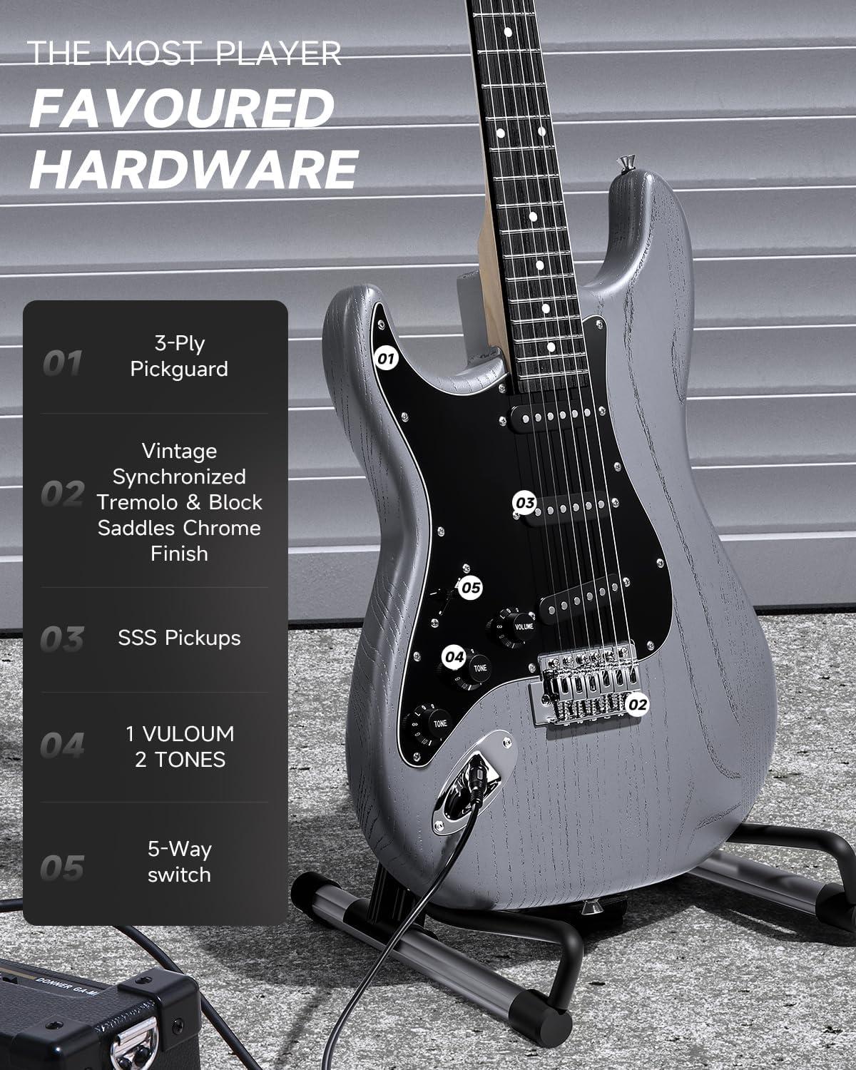 PERFECT FOR ALL, UNIQUE FOR YOU:Whether for kids or adult, beginner or seasoned, this all-inclusive set is the ideal way to kickstart your rock journey. Crafted from premium Manchurian Ash with an open matte finish, each guitar is uniquely beautiful and makes an unforgettable present for any occasion, from Christmas to birthdays