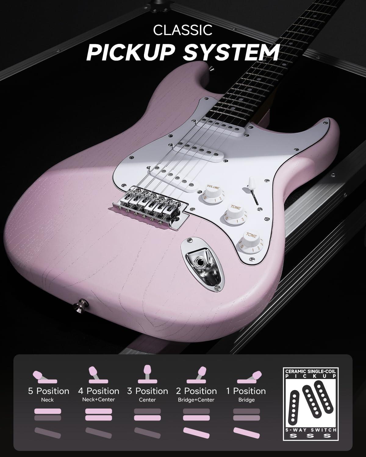 CLASSIC TONES, ENDLESS ZONES:With its classic SSS pickup configuration and 5-way switch, this electric guitar delivers bright, dynamic tones—ideal for country, blues, and funk, and perfect for exploring timeless sounds. Tone and volume controls add versatility to match any style, helping you unlock your inner guitar legend