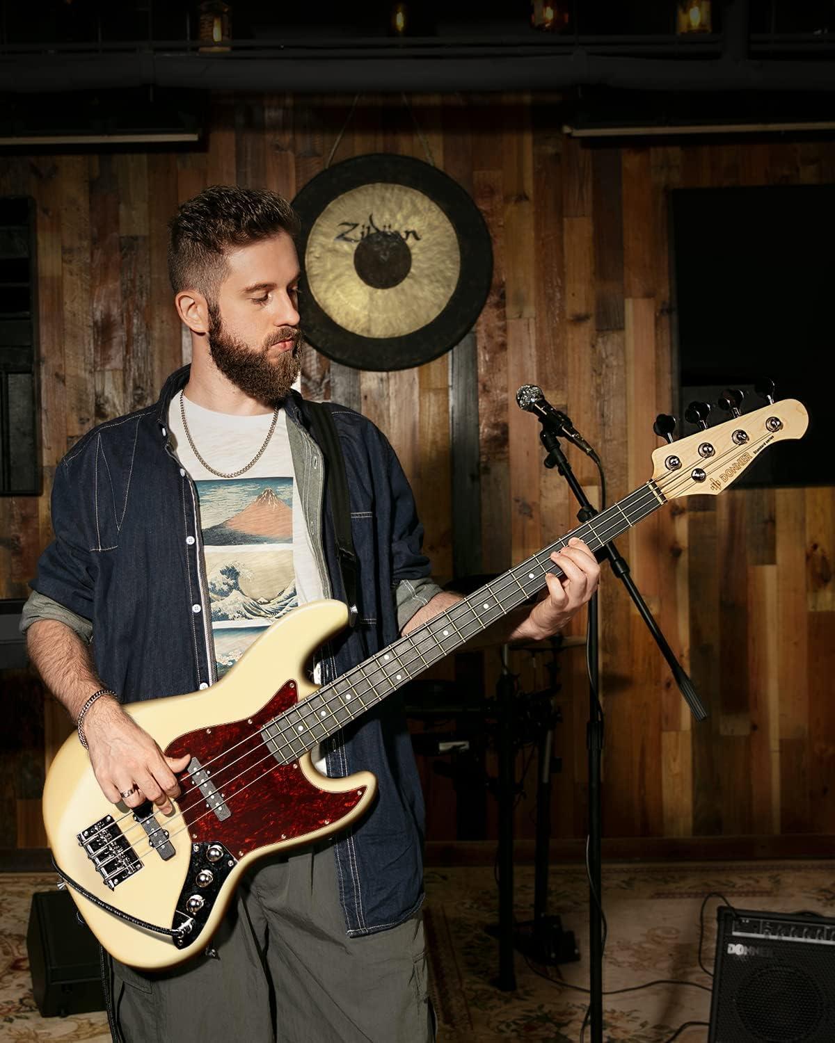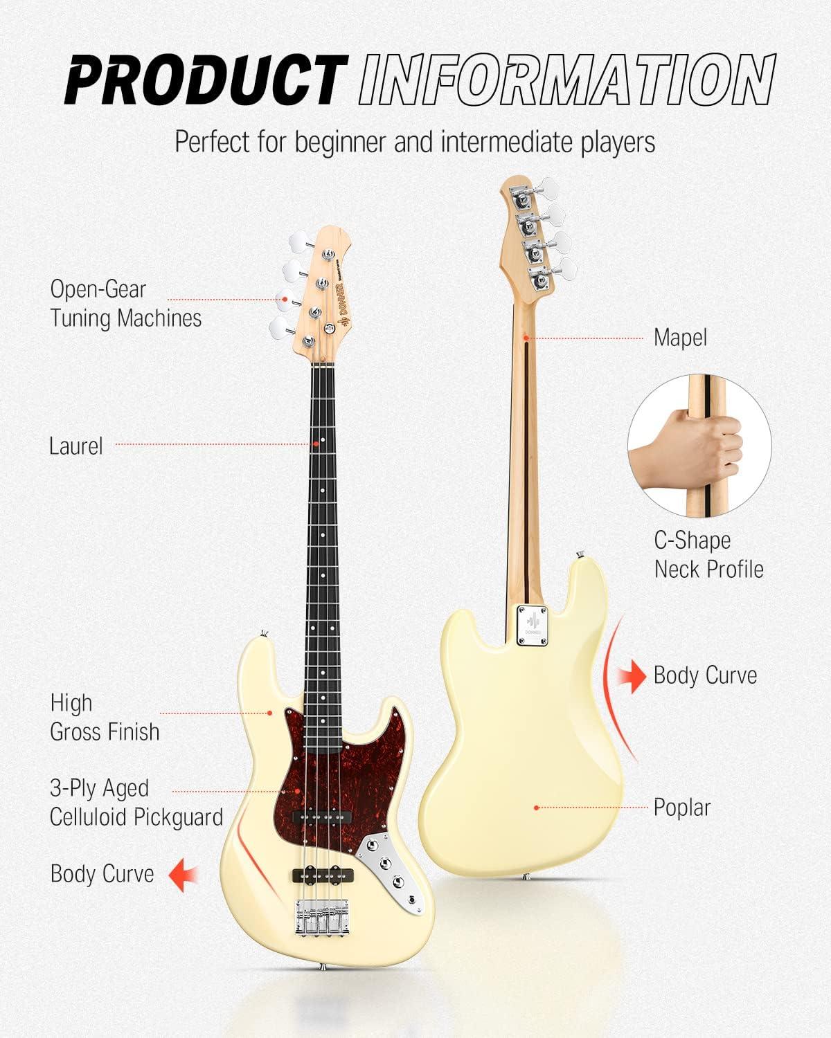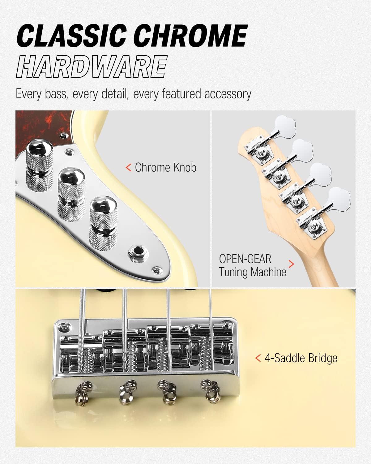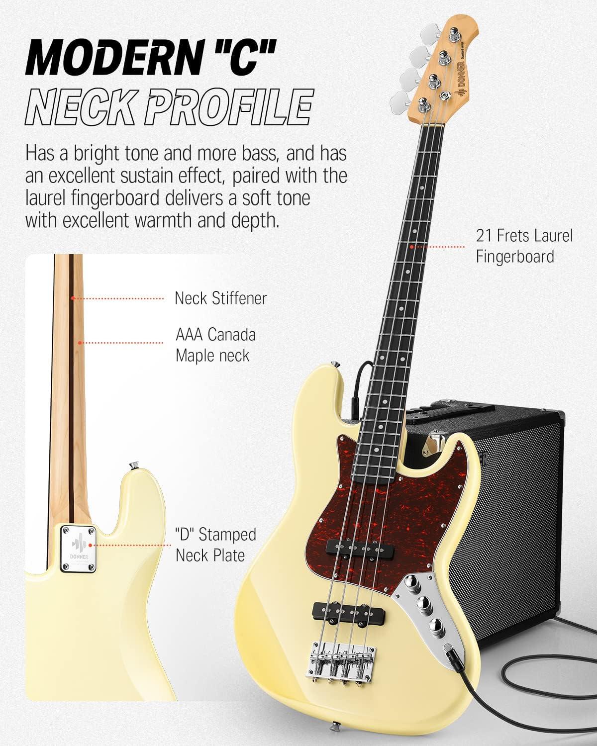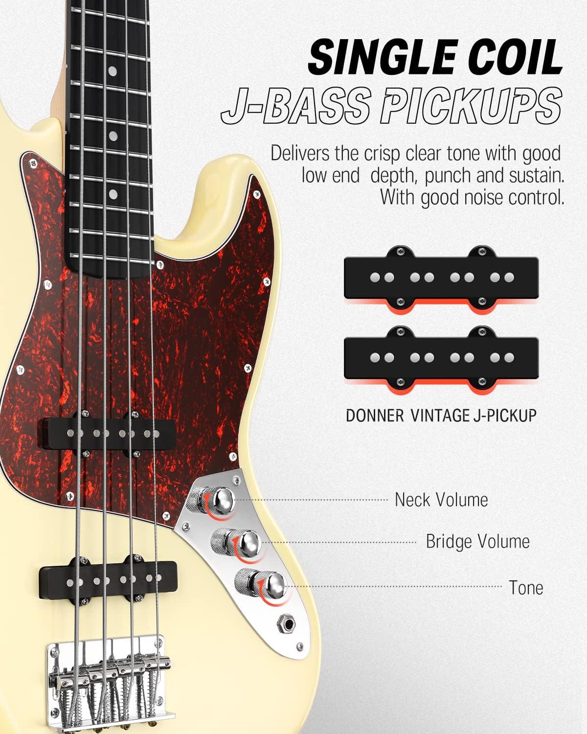 [Classic Bass Pickups]: Donner PB-Style electric bass with classic bass pickups, deliver classic tones with all the warmth and crisp, clear sound, always the first choice for bass players. The bass is lightweight and designed for portable play