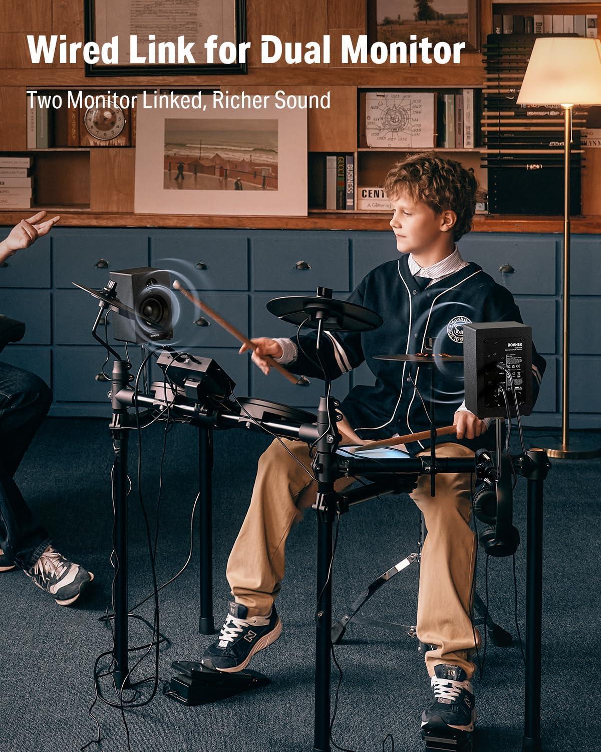 [Dual-Unit Professional Sound] The 20Watt drum amp DDA-20SE features a 3-inch woofer for deep bass and a 0.75-inch tweeter for crisp highs. Capable of reaching peak power up to 80W with a sound pressure level of 95dB, it ensures precise full-range drum sound reproduction for home practice while achieving distinct frequency separation.