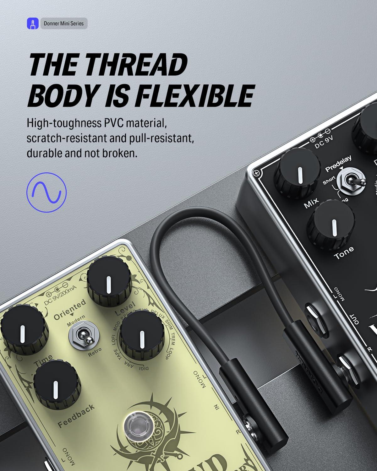 Flexible Pedal Cables without Stiffness: The flat PVC jacket improves the flexibility and durability. 6 Inch effects patch cable is long enough for easy fit.