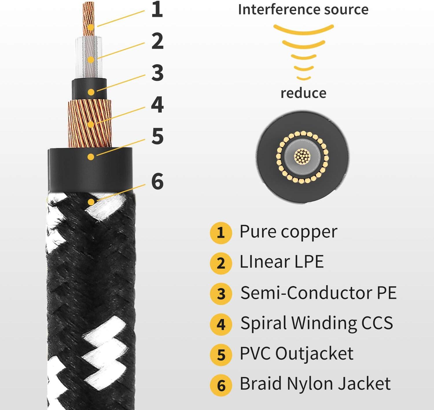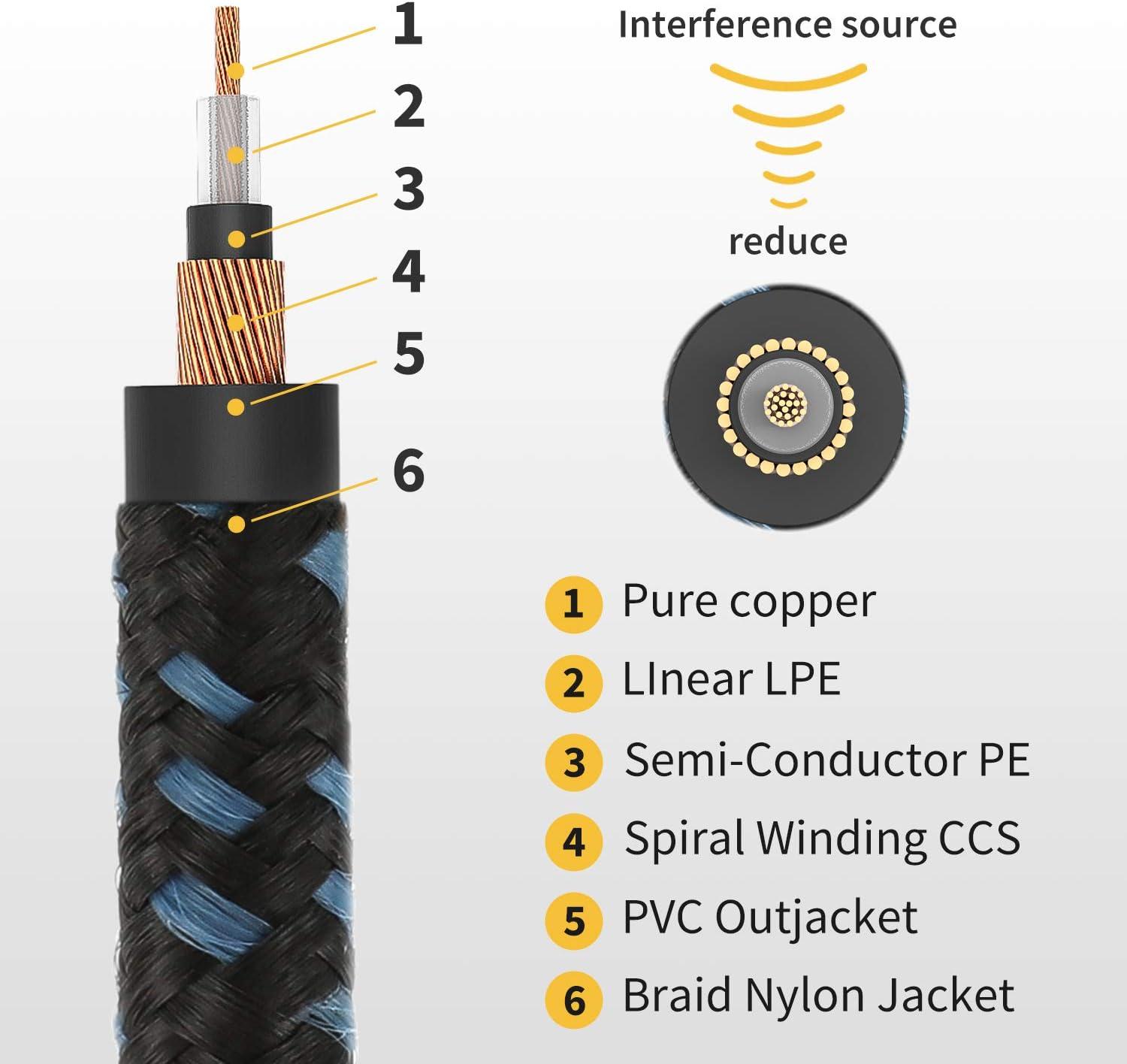 【LOW NOISE】 The PVC insulation material and the high-density stranded copper double shield provide noise rejection for quiet operation