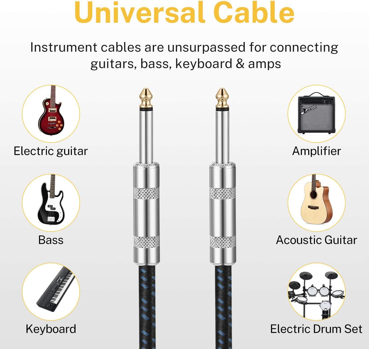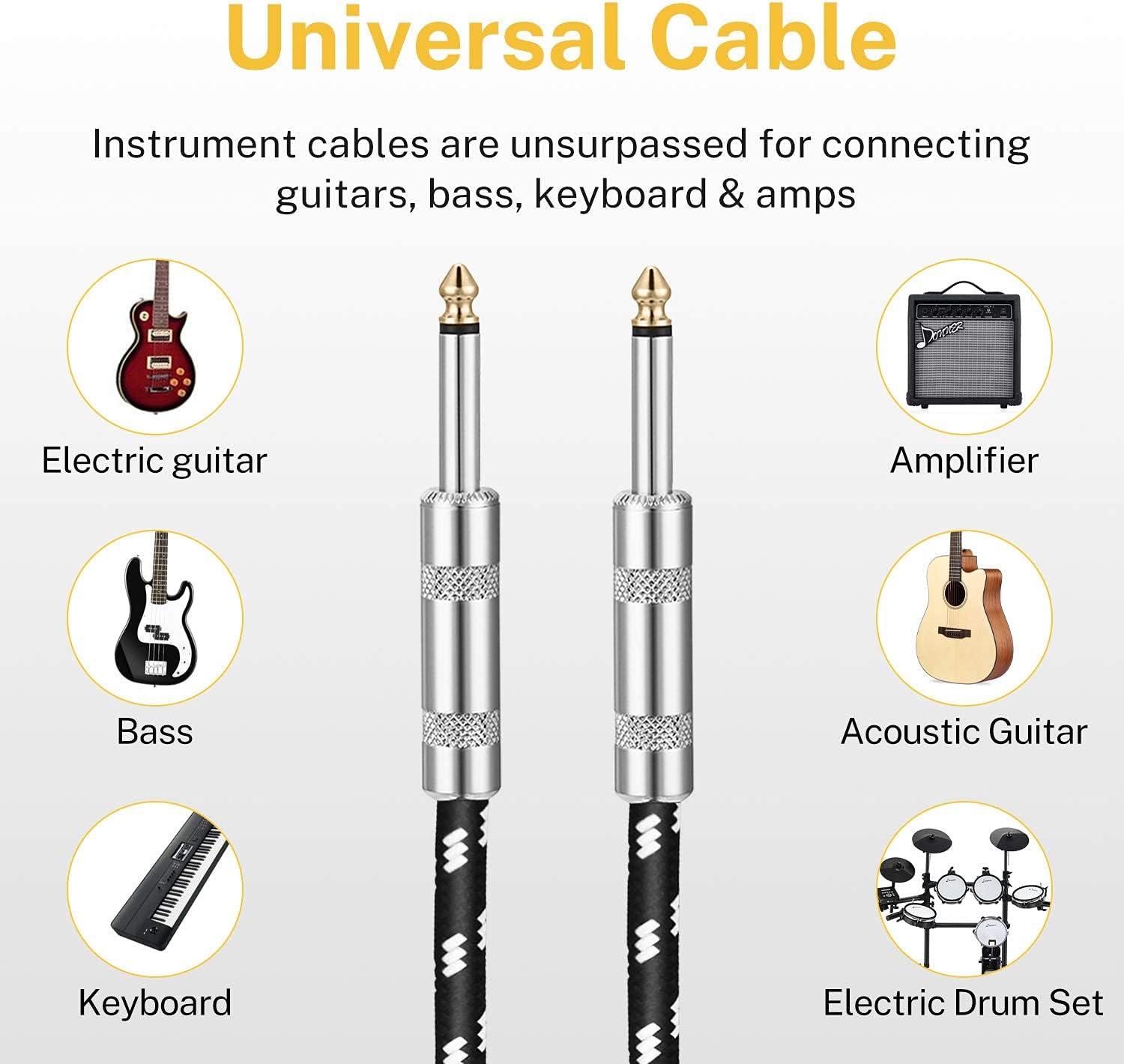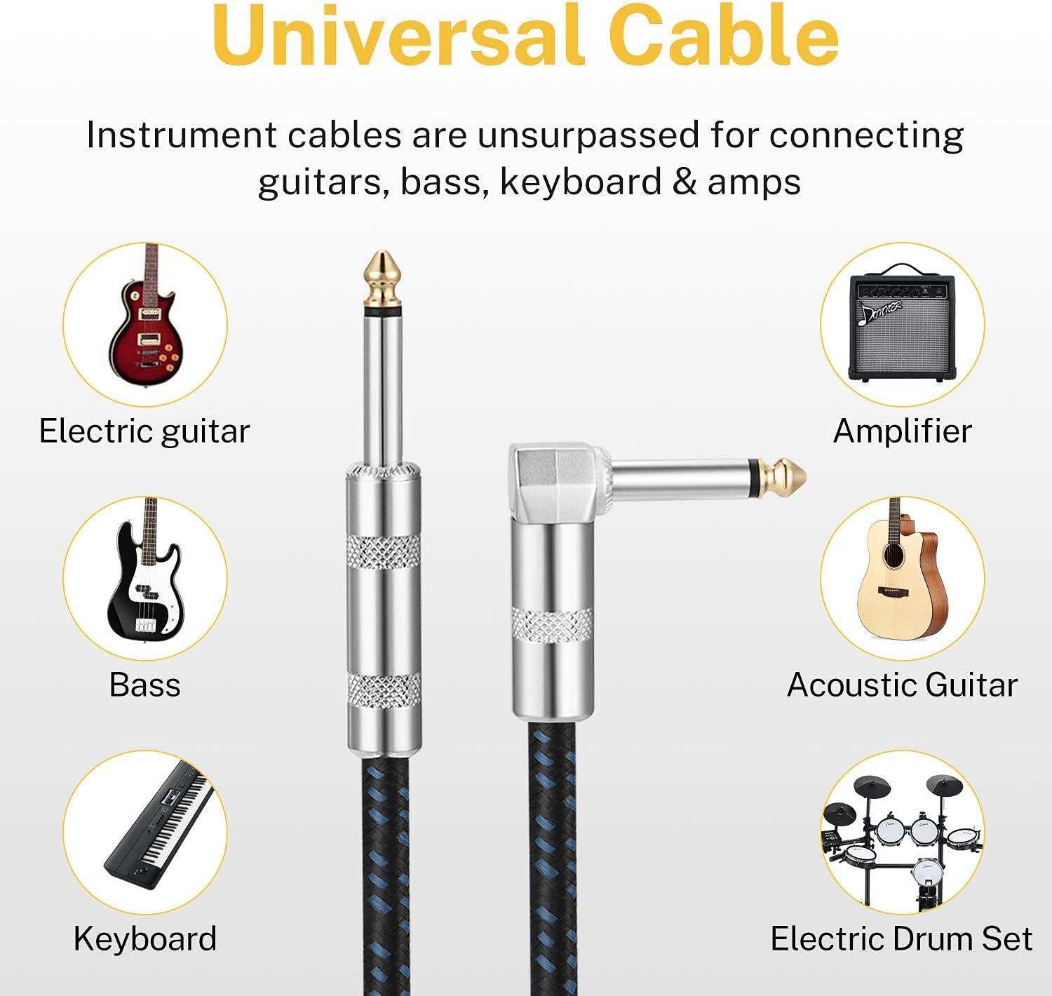 【DURABLE DESIGN】 Donner instrument cables have 1/4 straight and right-angle metal connectors with gold plated contact and black matte finish barrel, black tweed woven jacket with 7mm outer diameter, bring the cable strong and durable construction