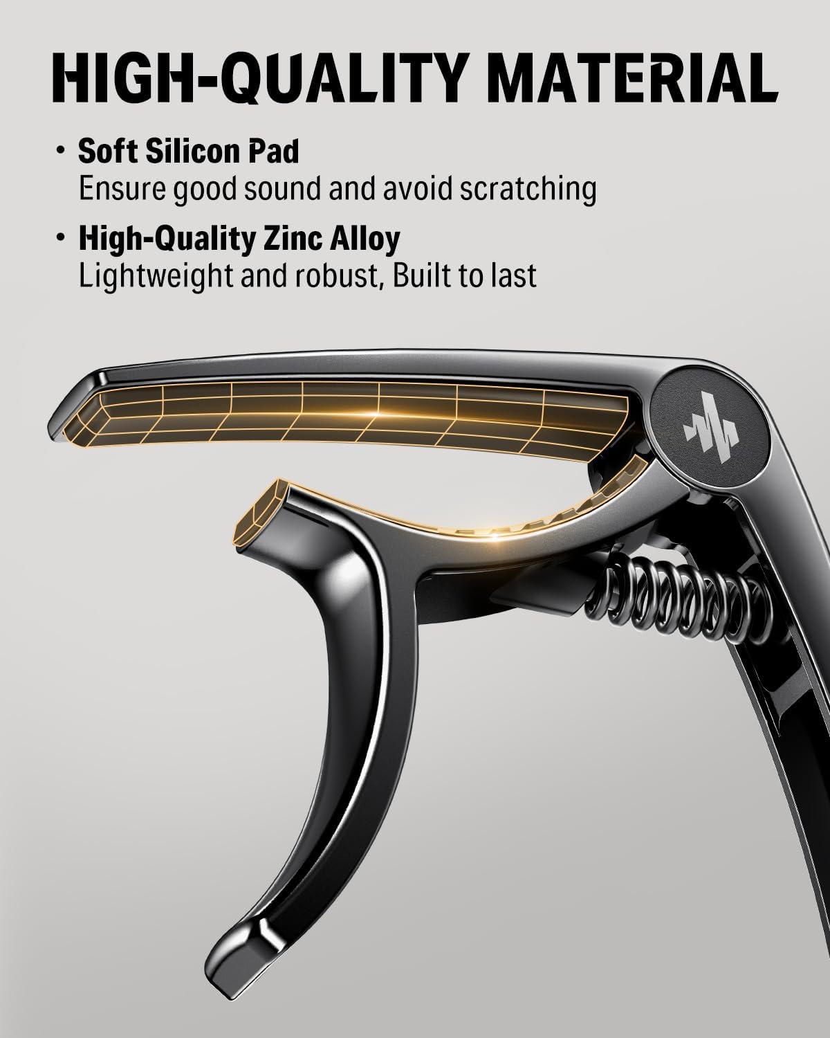 Enhanced Sound Quality: Delivering precise intonation and a clear, resonant tone across all frets, this capo ensures a tight seal on the strings, eliminating fret buzz for superior performance