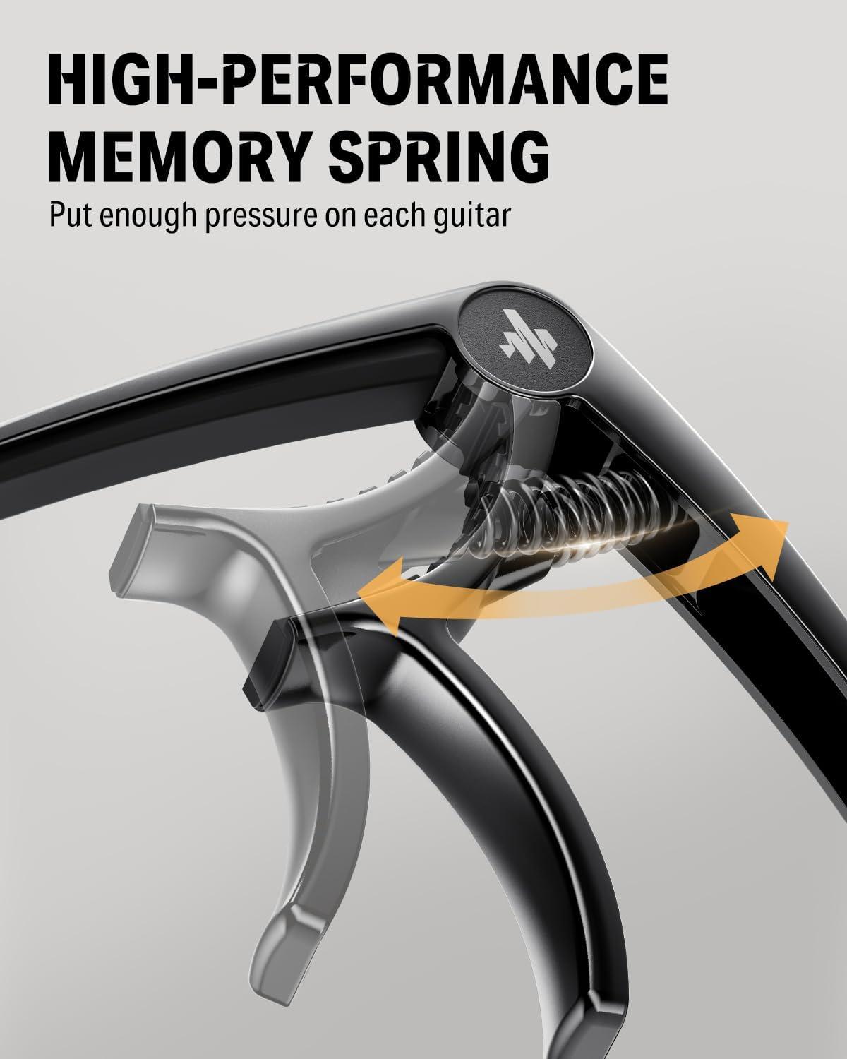 Reliable Steel Spring Mechanism: The internal memory of the steel spring ensures consistent pressure application, contributing to the capo's durability and performance. Its smooth, rounded, and high-polished gloss finish enhances durability
