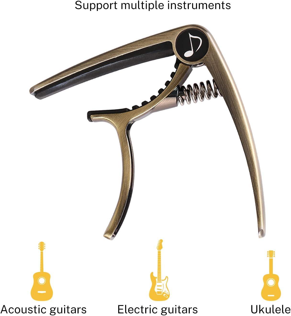 Ease of Use Across Instruments: Designed to fit a variety of stringed instruments including electric and acoustic guitars, ukuleles, banjos, and mandolins, this capo features a smooth surface and an ergonomic handle for effortless use