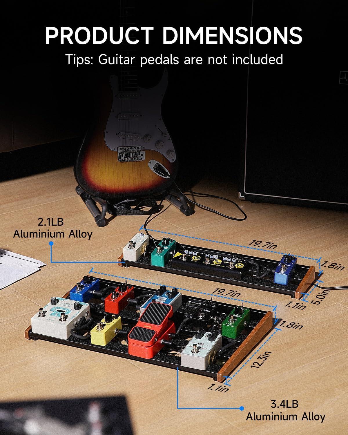 【Lightweight and Sturdy Aluminum Alloy】Donner large pedal board is made of high-quality aluminum alloy, offering stability and durability without warping. Weighing only 3.4 lb and measuring 19.7*12.3*1.8″, it can accommodate 8-10 guitar pedals. Ideal for performances, rehearsals, or studio sessions