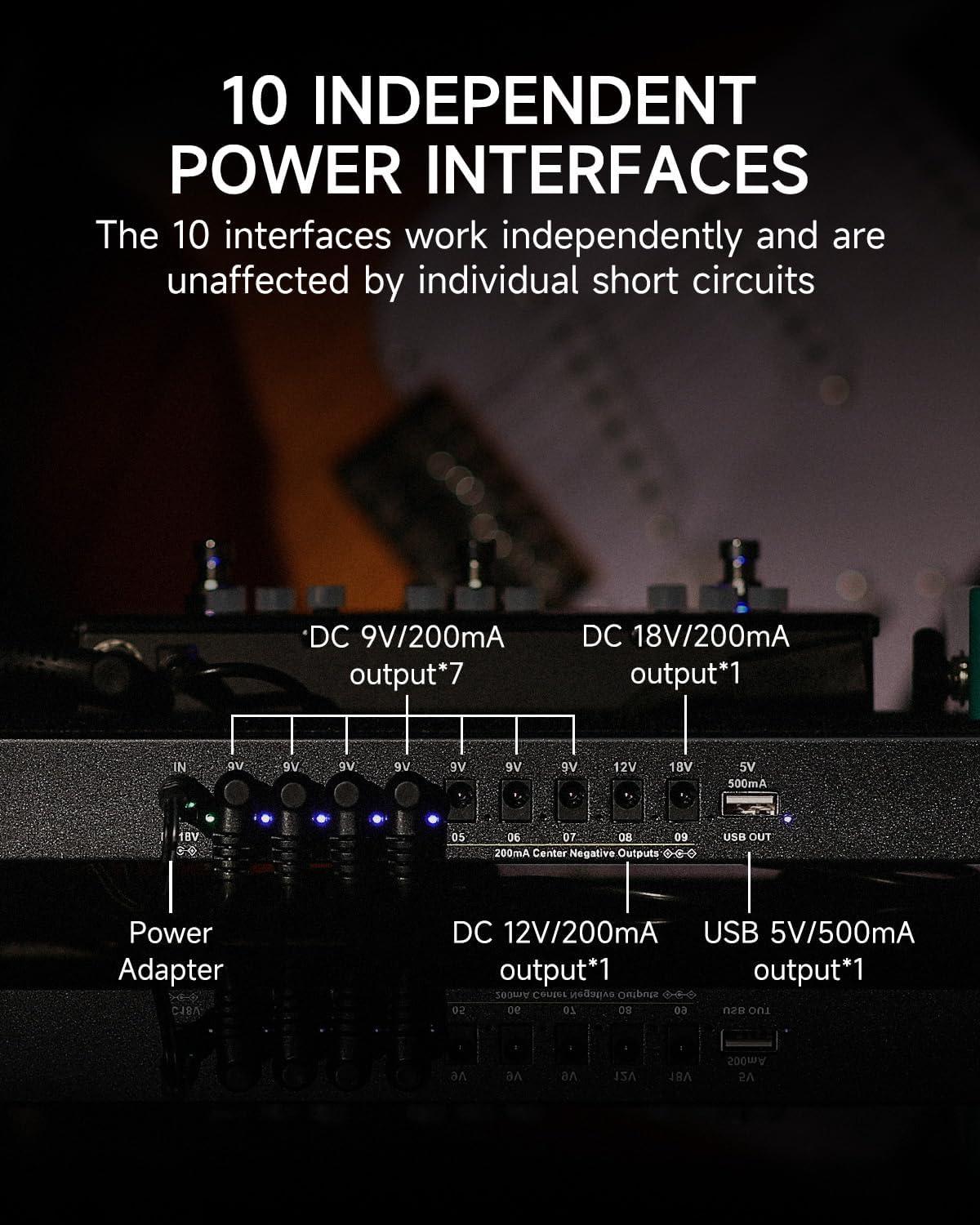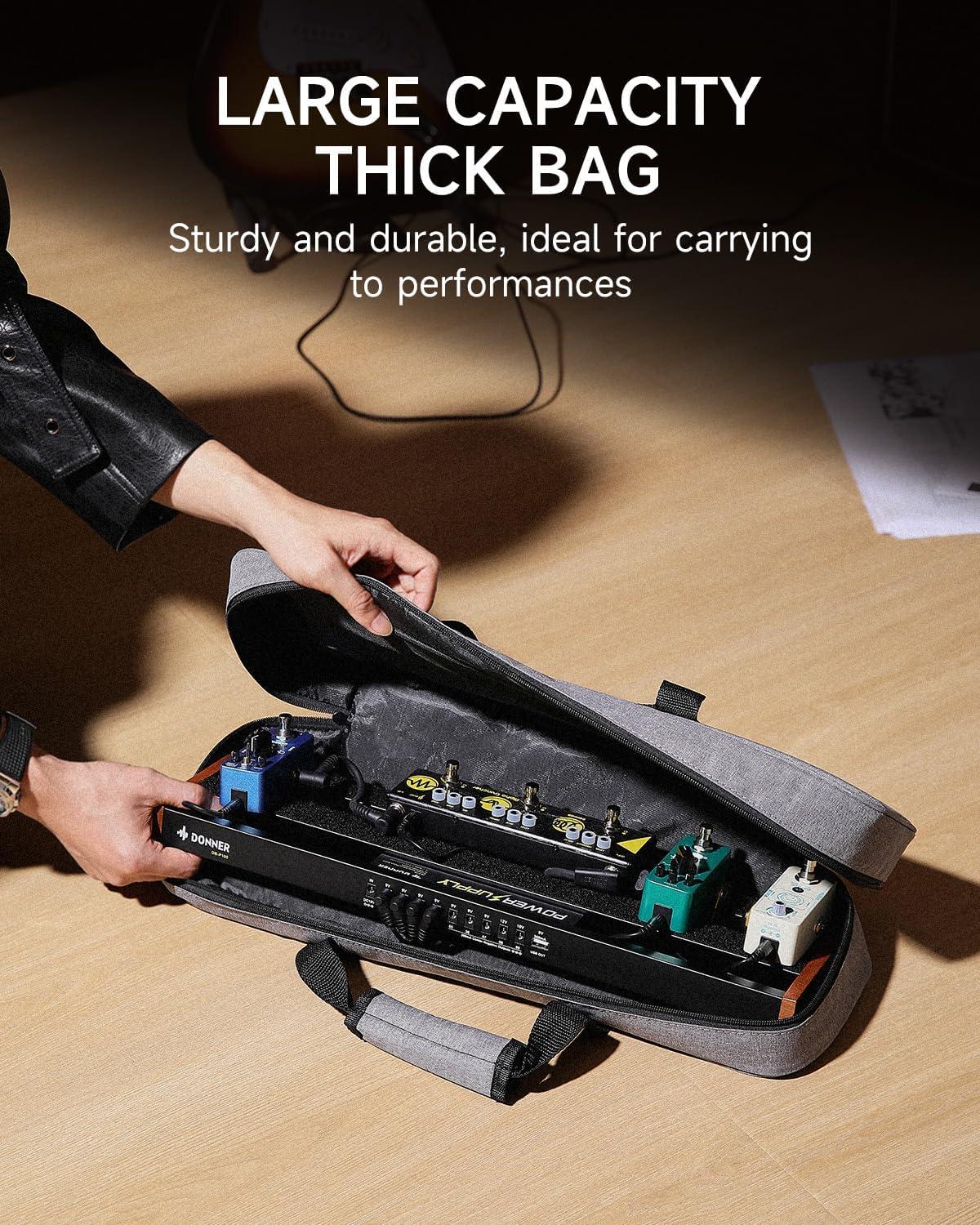 【Built-in Power Supply】The powered pedalboard with built-in power supply provides clean and quiet power for pedals, with each channel featuring individual short-circuit protection, ensuring no noise interference