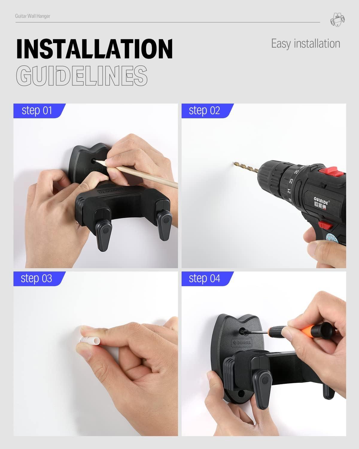 【Space Saving】The guitar hangers for wall help you to save more space in your room. It can achieve force balance automatically, more convenient to play. You could use it for your living room, bedroom, music studio, office and rehearsal space.