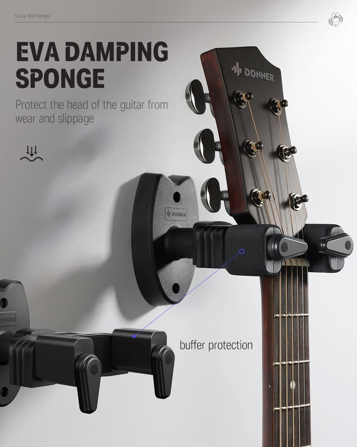 【Durable Material】Donner guitar hanger wall mount features EVA cushions and padded arms to protect your instrument's surface from scratches, effectively protecting your beloved instrument.