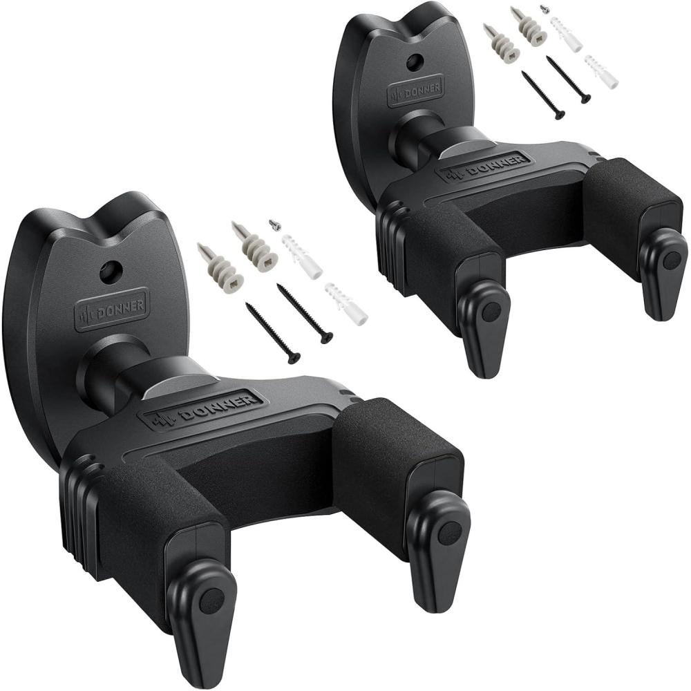 【Suitable For Various Instruments】Donner guitar locking wall mount can fit guitars with asymmetrical headstocks, and work with many types of electric guitars, acoustic guitars, bass guitars, mandolins, and ukuleles.