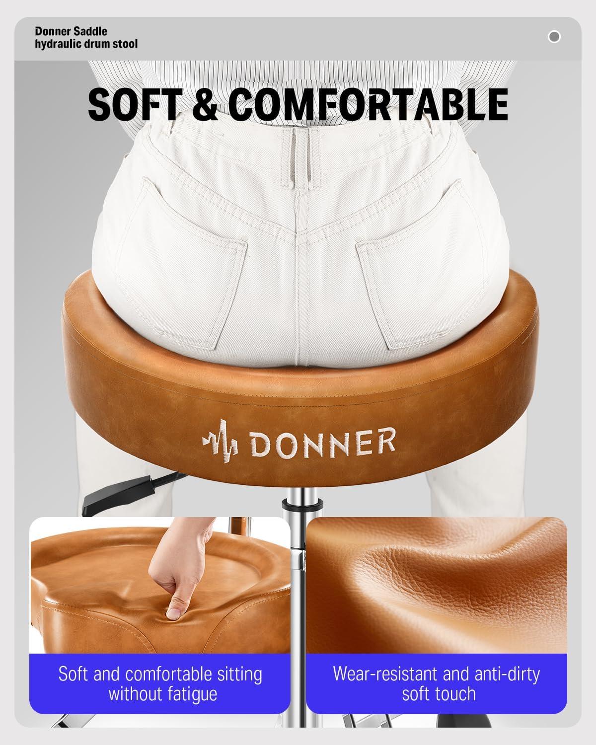 Donner Heavy Duty Drum Throne, Motorcycle Style Drum Stool, Widened Drum Seat with Upgraded Materials, Height Adjustable Padded Drum Chair, Double Braced(19.8 x 15.5 x 9.8)