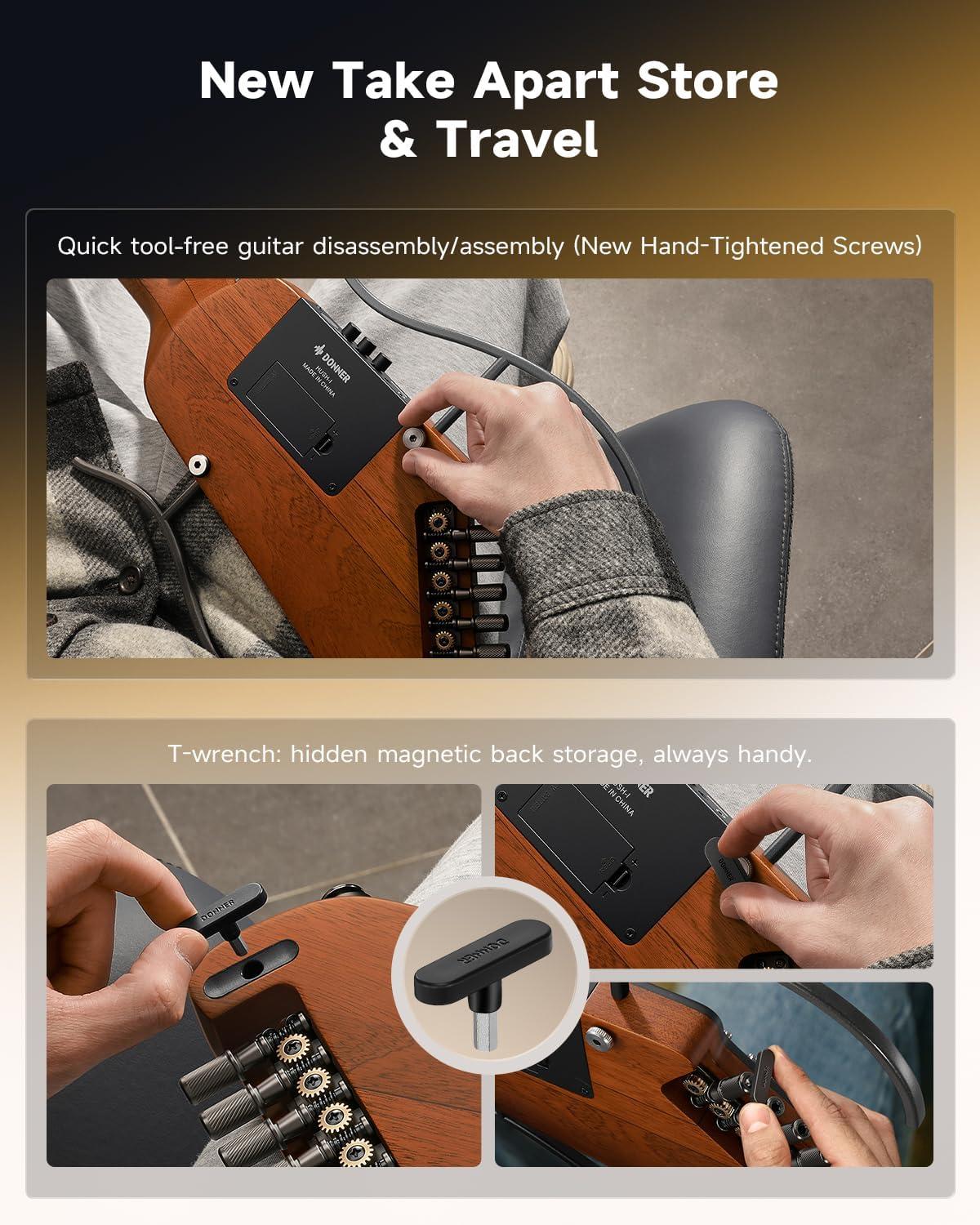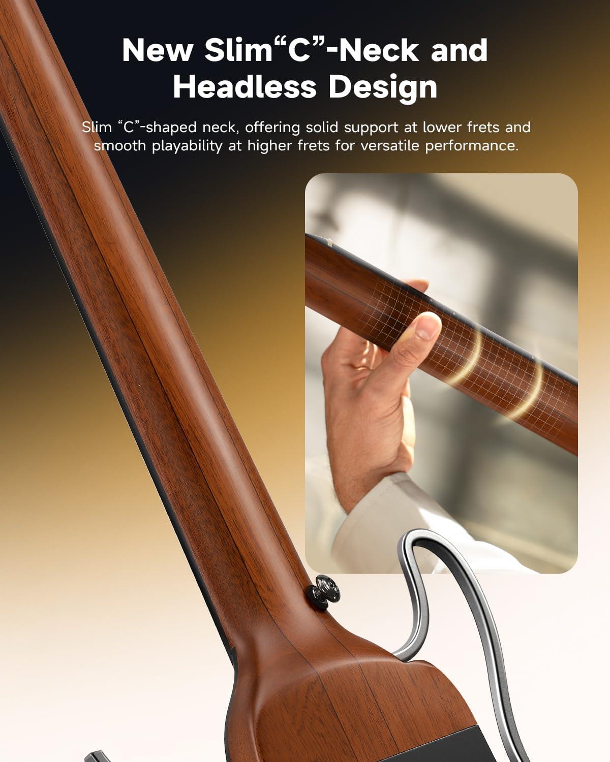 【Enhanced Build & Tone Experience】Featuring the Pro Series HUSH Custom Undersaddle Pickup and DONNER HPS-II preamp, specially tuned for the HUSH-I EVO2, this system delivers quick dynamic response, fuller mid-lows, and smooth, clear highs for a natural, balanced tone across pop, rock, jazz, and more playing styles.
