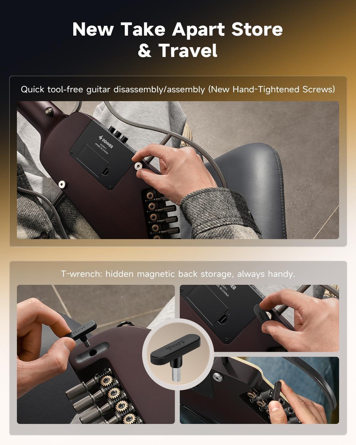 【Enhanced Build & Tone Experience】Featuring the Pro Series HUSH Custom Undersaddle Pickup and DONNER HPS-II preamp, specially tuned for the HUSH-I EVO2, this system delivers quick dynamic response, fuller mid-lows, and smooth, clear highs for a natural, balanced tone across pop, rock, jazz, and more playing styles.