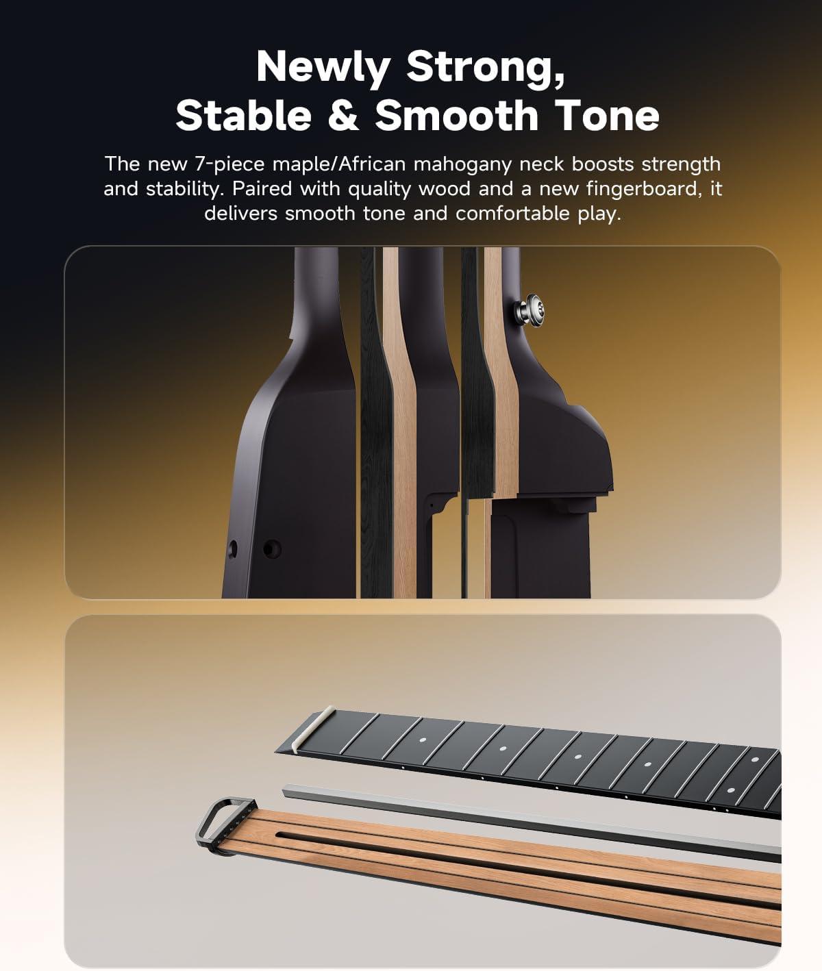 【Upgraded Neck Construction】Upgraded to a 7-piece maple and African mahogany neck for greater strength, stability, and warp resistance. The slim C-shape, integrated design, HPL fingerboard, and bone nut ensure smooth playability, balanced resonance, and a warm, natural tone across climates.