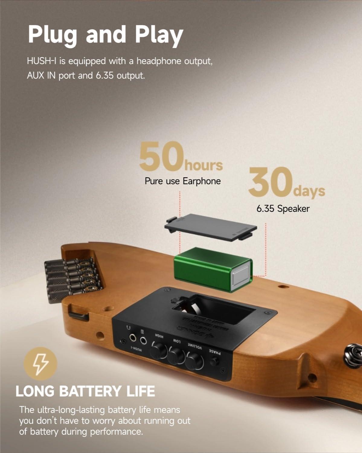 [Practice Anytime, Anywhere] – Ultra-quiet -30-45dB LEVEL pizzicato playing, equipped with a preamp system delivers a natural-sounding acoustic tone through headphones or the 6.35 port output. Powered by an outfitted 9v battery attached, providing 50 hours of headphone usage or 30 days of 6.35 speaker usage. You can enjoy your show on stage or practice quietly at home or school dorm without worrying about running out of battery or noise nuisance anymore