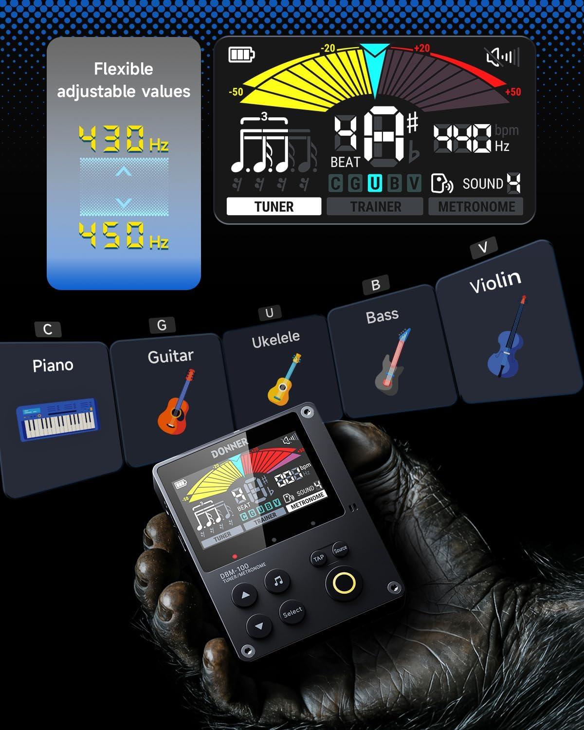 【3 IN 1 Device】Donner metronome combines a Tuner, a Metronome, and a Tone Generator, all housed in a pocket-sized device. Can be used for your gig or practice. Designed for beginners and professionals, with a strong and durable design, this tuner was built to last.