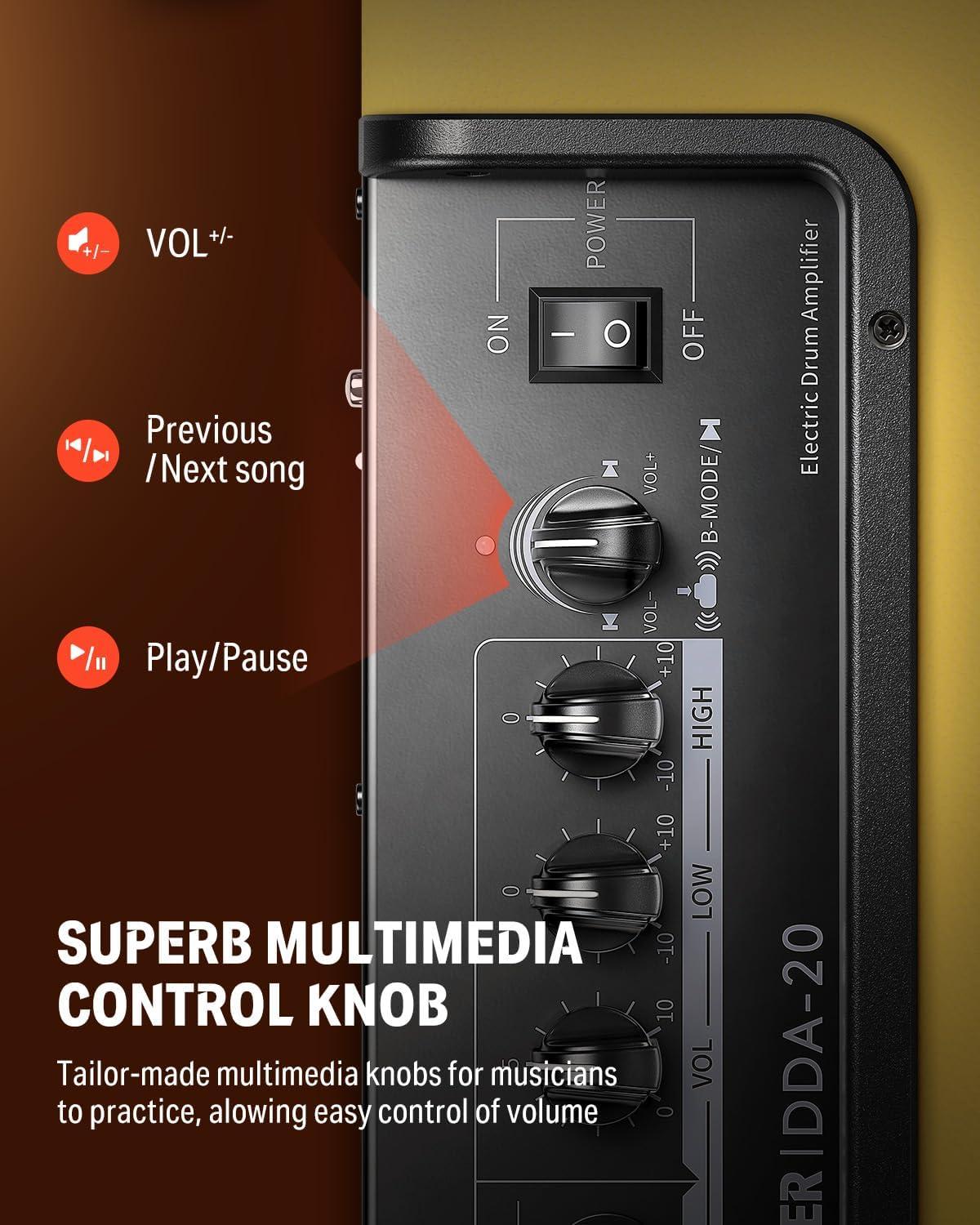 [Stunning Multimedia Controls] The multimedia function of the DDA-20 allows musicians to connect their mobile devices to the DDA-20 wirelessly and control everything via the multimedia control knob on the amplifier.