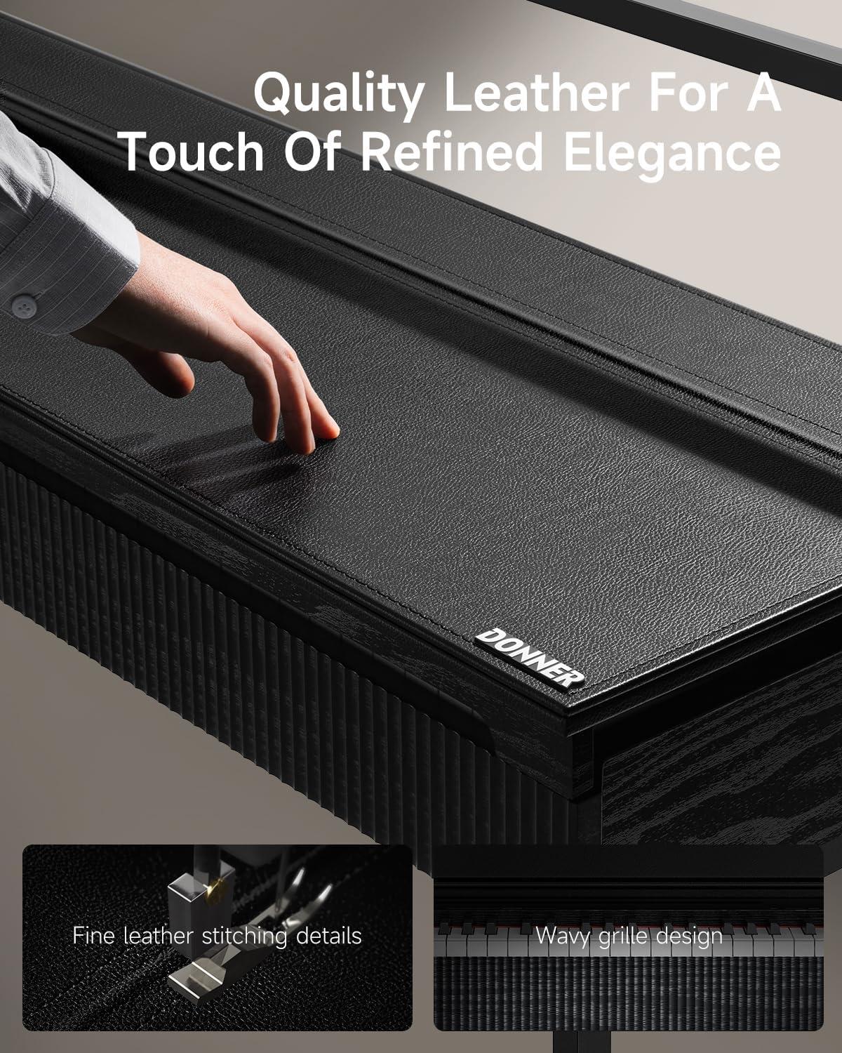 【Differences of S300】Part of Donner's OURA Piano series, S300 88 key weighted keyboard offers diverse tones with genuine acoustic piano feel. Designed in Scandinavian Modern Minimalist style with clean geometric lines and an integrated soft-touch classic leather lid. It's not just a digital piano, but a piece of home art.