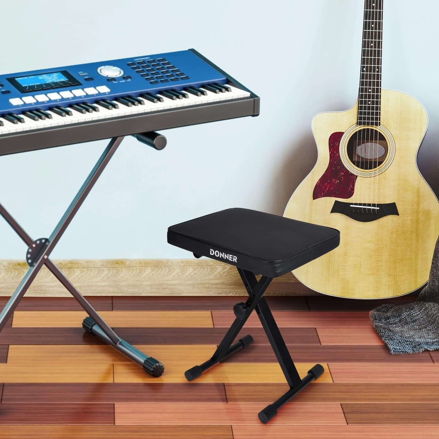 Non-skid Design – Donner keyboard bench stool is equipped with rubber non-skid sleeves to prevent the keyboard seat from shifting when you play the piano. A high-quality steel bracket with an X-Style design makes it very stable.