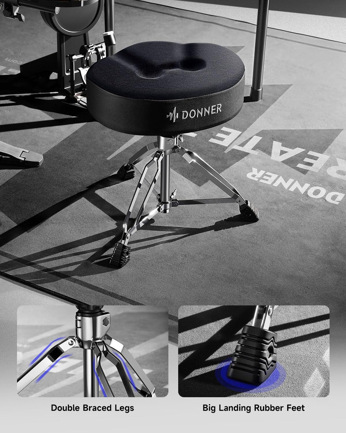 𝐓𝐡𝐢𝐜𝐤𝐞𝐧𝐞𝐝 𝐂𝐨𝐦𝐟𝐨𝐫𝐭 𝐃𝐫𝐮𝐦𝐦𝐞𝐫 𝐒𝐭𝐨𝐨𝐥: Compared to standard saddle-style drum thrones, this drum seat features a widened, saddle-shaped design with an extra-thick 4.72 inches (12 cm) cushion. Wrapped in soft plush material and filled with high-density memory foam, DT-200 drummer seat provides superior comfort and support for long playing sessions without sitting fatigue.