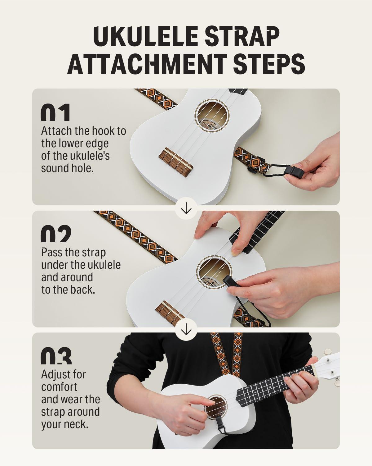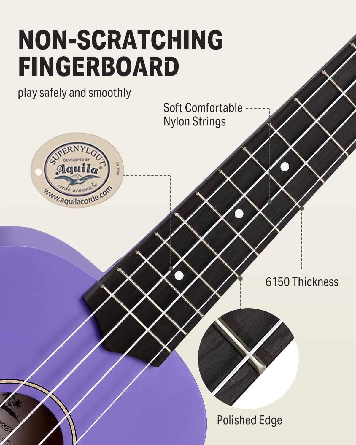 [DESIGNED WITH BEGINNERS IN MIND] Our beginner-friendly kit includes everything you need to learn the ukulele on your own. The all-inclusive package features a soprano ukulele, gig bag, tuner, extra Aquila nylon strings, 4 picks, and a cleaning cloth. Whether you're a beginner or a professional, our kit meets all your needs.